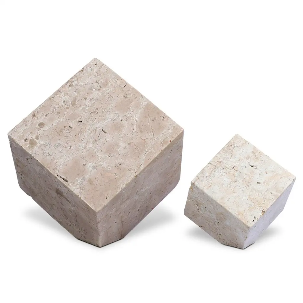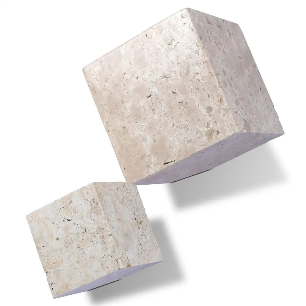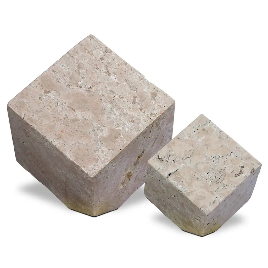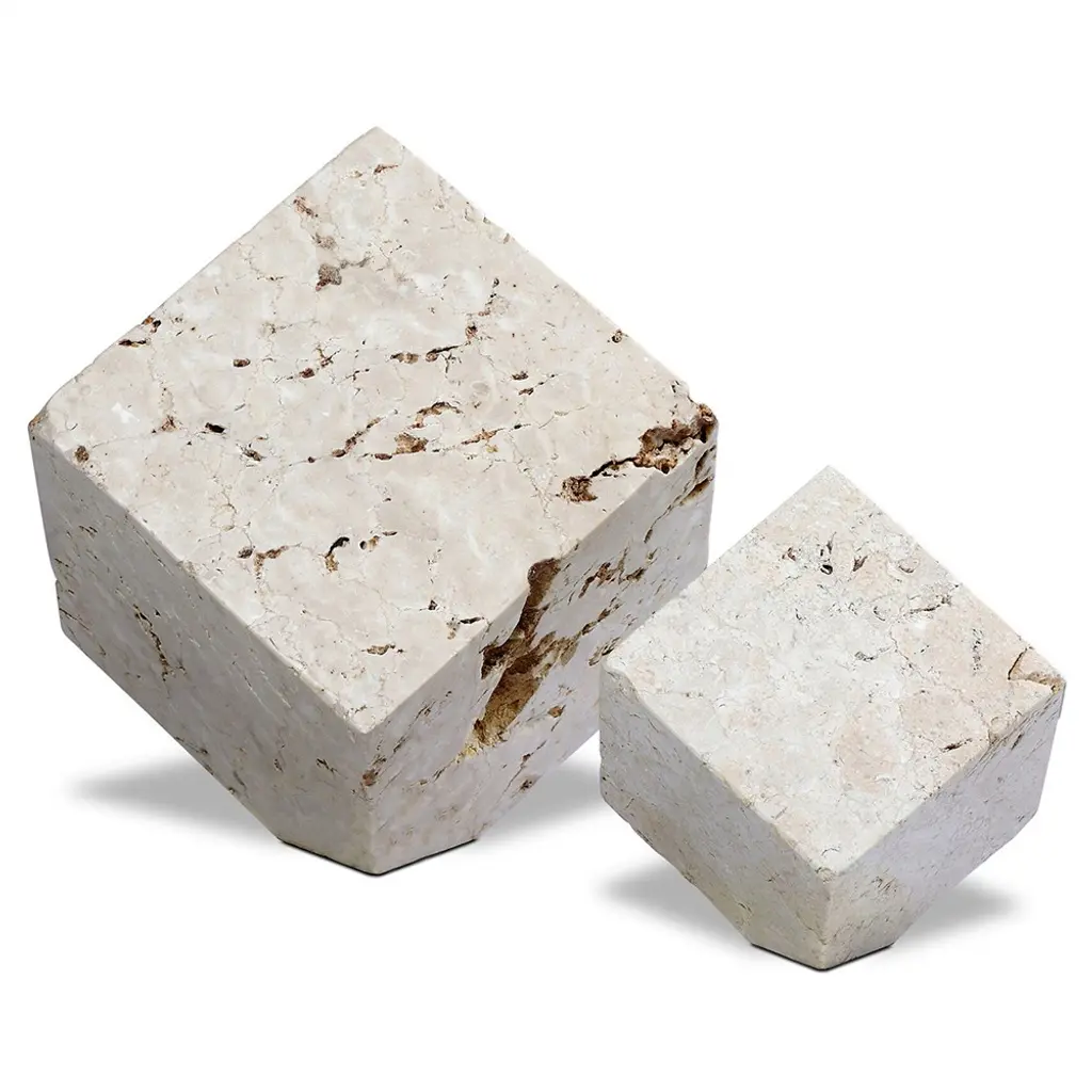 Anders Modern White Travertine Cube Sculpture - Set Of 2