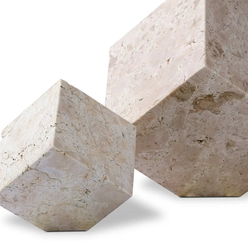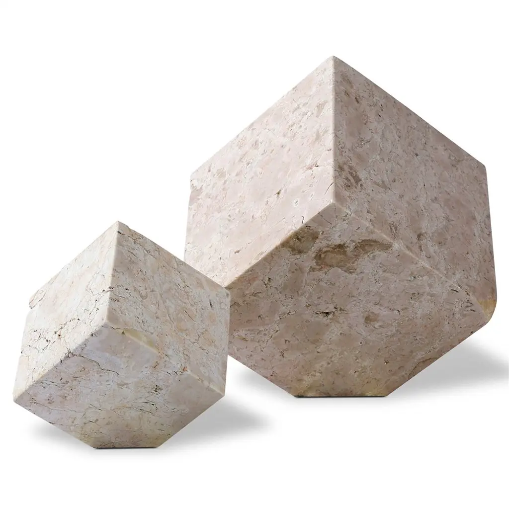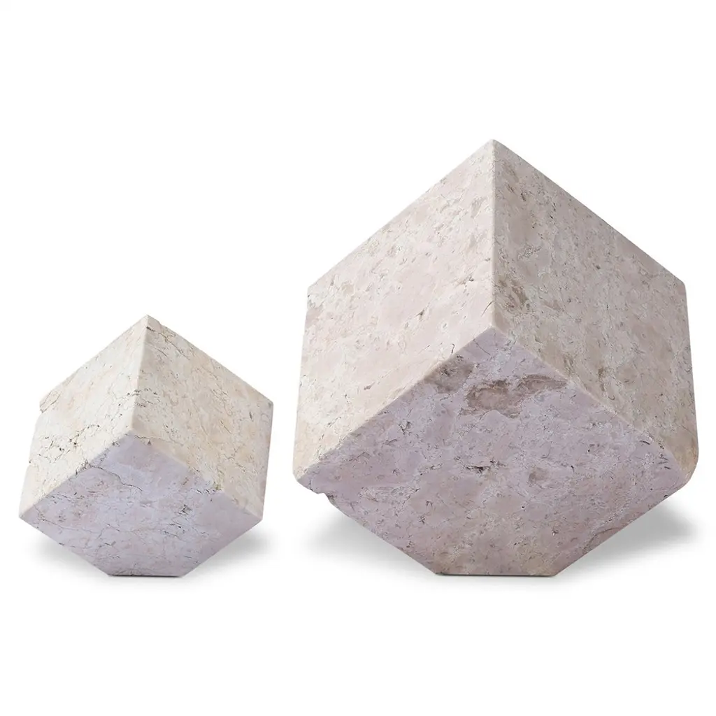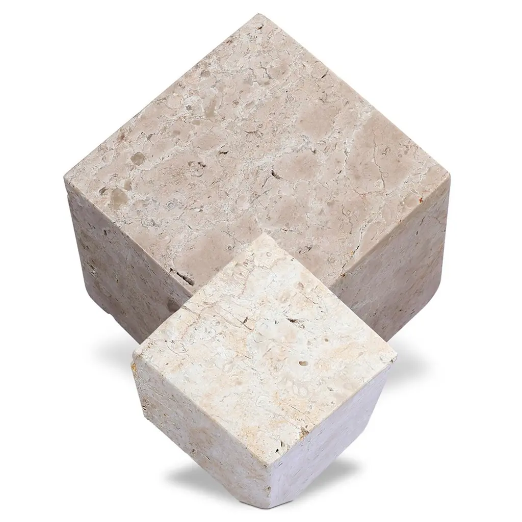 Anders Modern White Travertine Cube Sculpture - Set Of 2