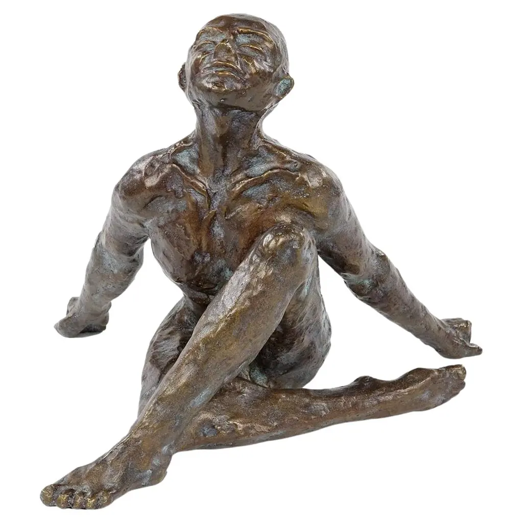 A contemporarily striking twist showcases this modern human body sculpture. A rustic finish covered iron captures the essence of peaceful contemplation.