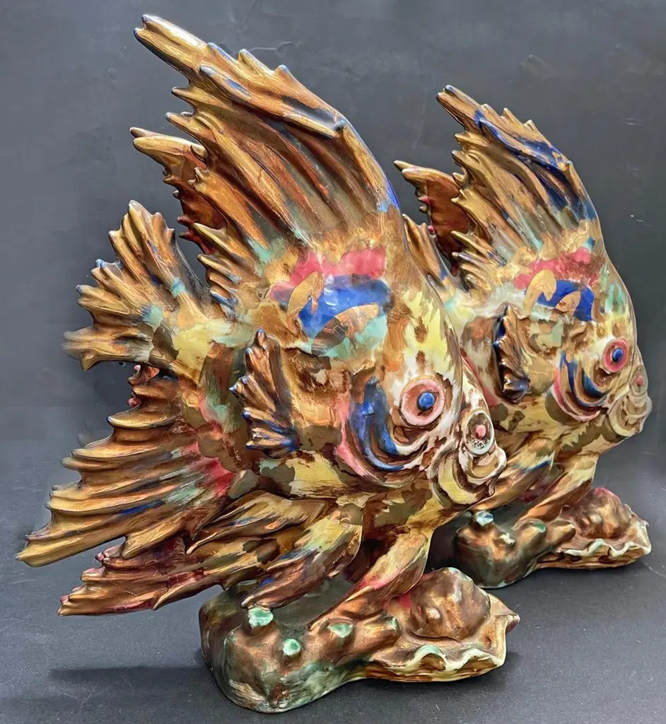 "Angel Fish, " Large, Stunning Technicolor Art Deco Sculptures, Occupied Japan