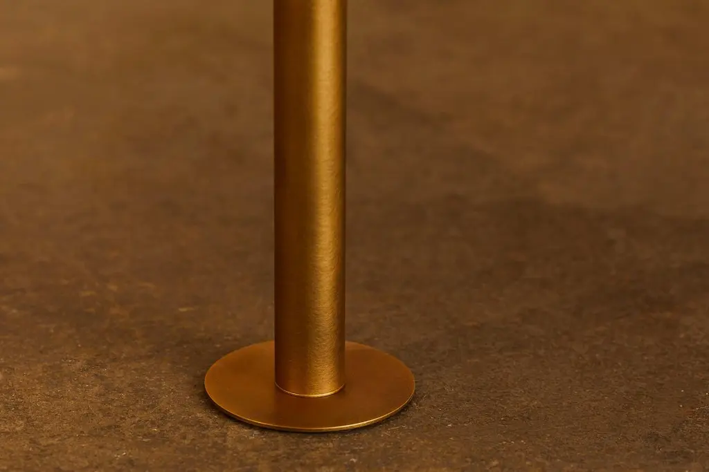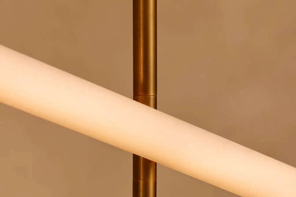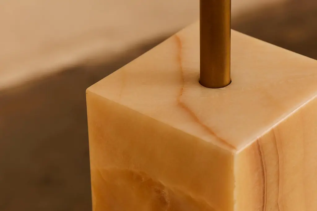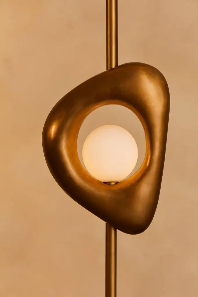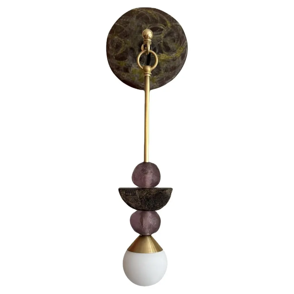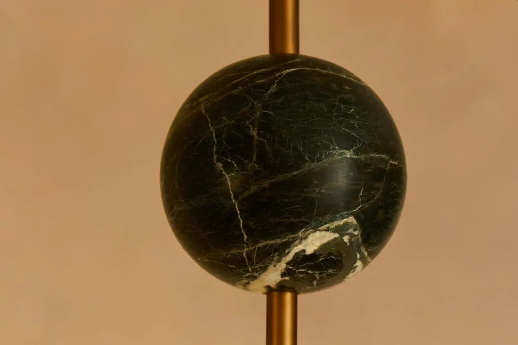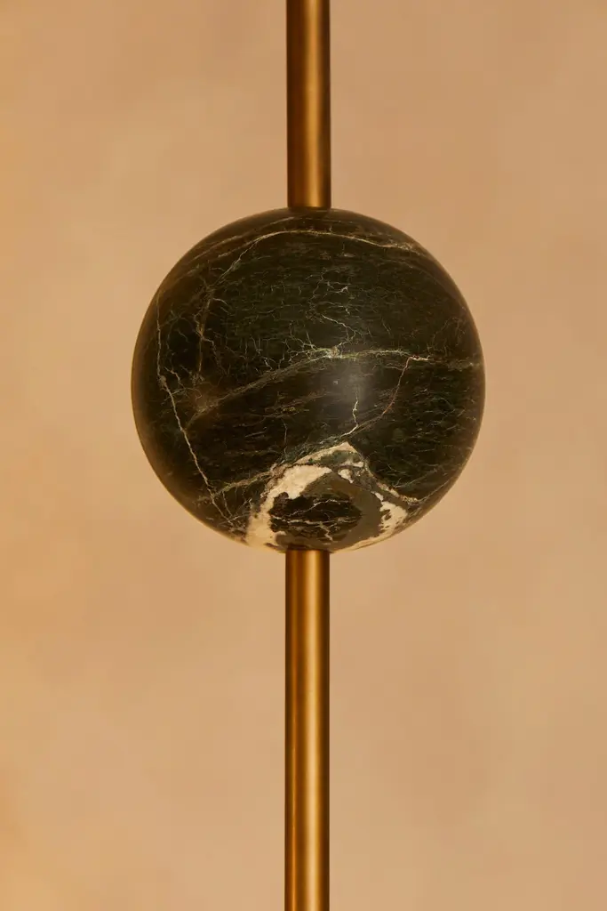 Cast bronze, handblown glass and marble works stretch between floor and ceiling. It is both sculpture and light-giving. The height of each Form is tailored to fit perfectly in any space. Available as a plug-in from top or bottom, please inquire.This product uses an external transformer, please ensure proper compatibility prior to purchase.This product is not come UL Certified. If you need UL Certification please let us know prior to placing your order.Materials: Bronze, Brass, Marble, Acrylic, Glass.Please inquire regarding marble selection, options vary based on availability.Dimensions: Fixture height to order (min – 80?) W – 19-3/4”, H – 68-1/8”, D – 8?Customization: available.