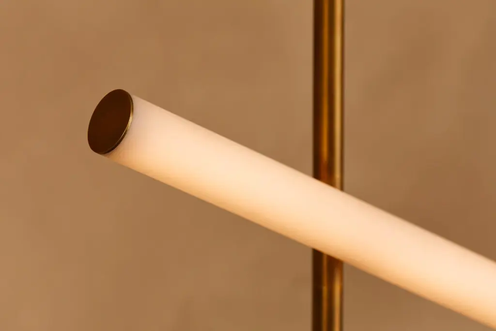 Carved travertine and handblown glass works stretch between floor and ceiling. It is both sculpture and light-giving. The height of each Form is tailored to fit perfectly in any space. Available as a plug-in from top or bottom, please inquire.This product uses an external transformer, please ensure proper compatibility prior to purchase.This product is not come UL Certified. If you need UL Certification please let us know prior to placing your order.Materials: Travertine, Brass, Acrylic, Glass.Dimensions: Fixture height to order (min – 80) W – 19-3/4”, H – 68-1/8”, D – 8?Customization: Available.