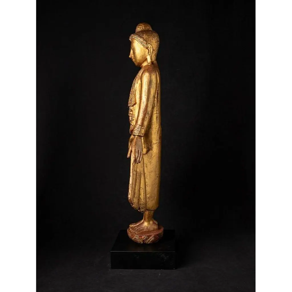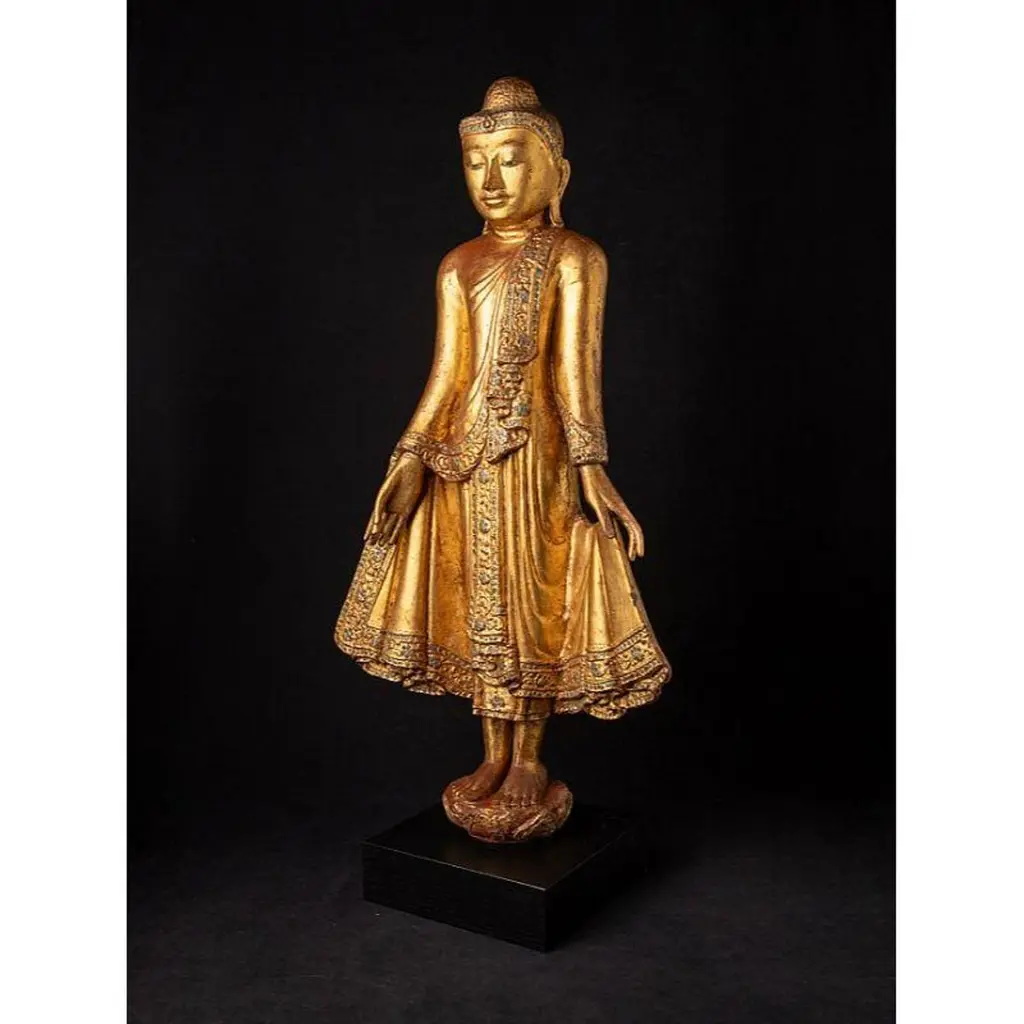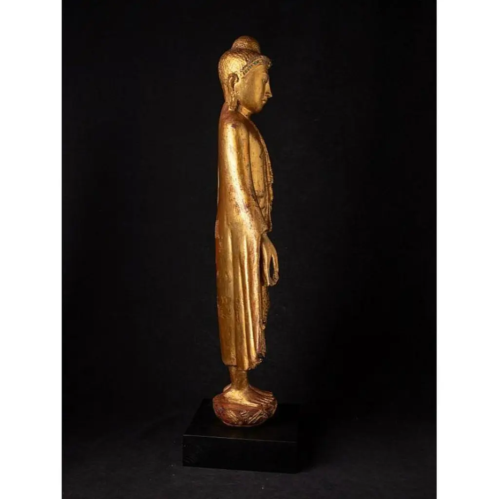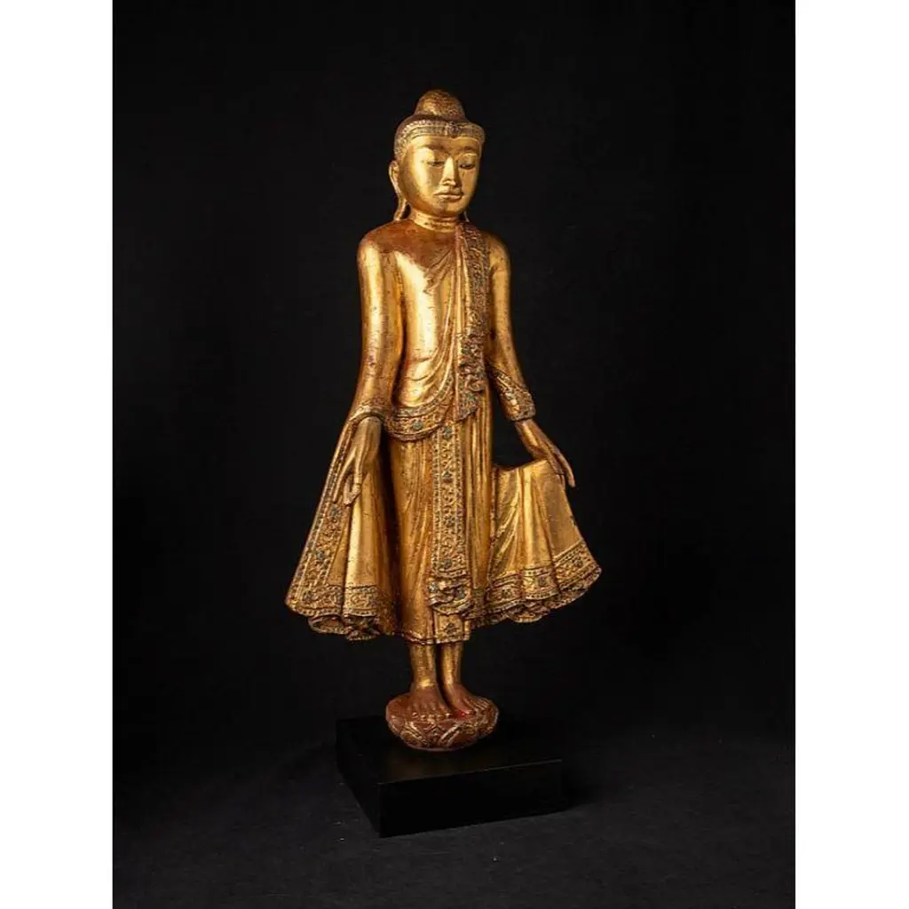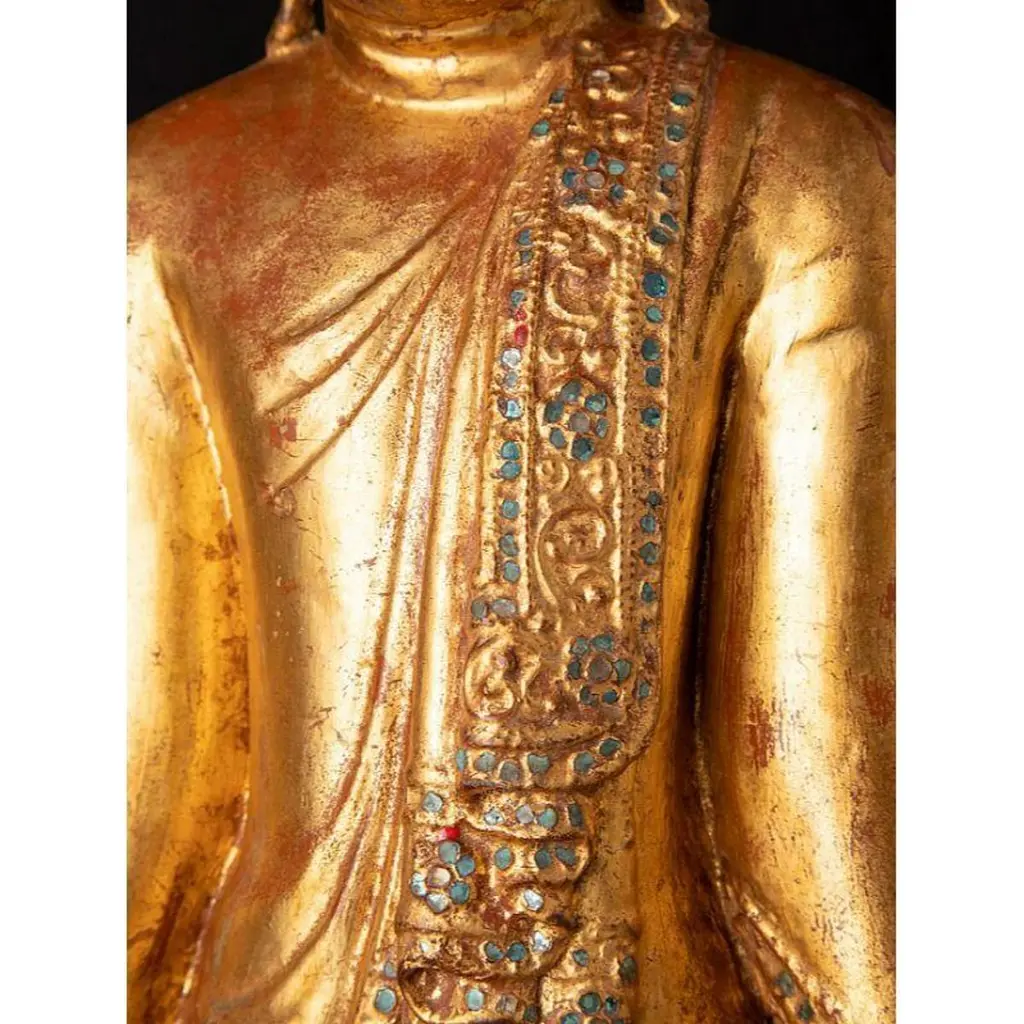 Material: wood84 cm high 39,5 cm wide and 22 cm deepWeight: 7.05 kgsGilded with 24 krt. goldMandalay styleOriginating from Burma19th centuryWith inlayed eyes