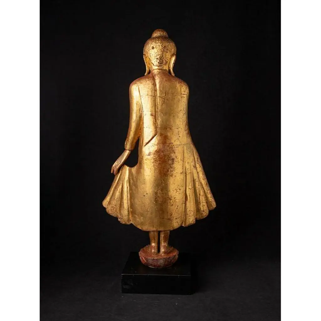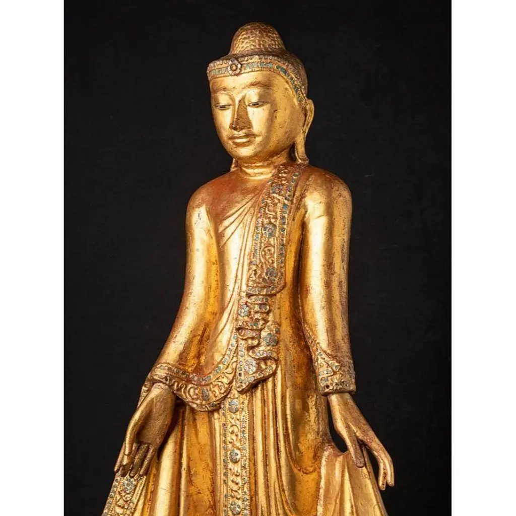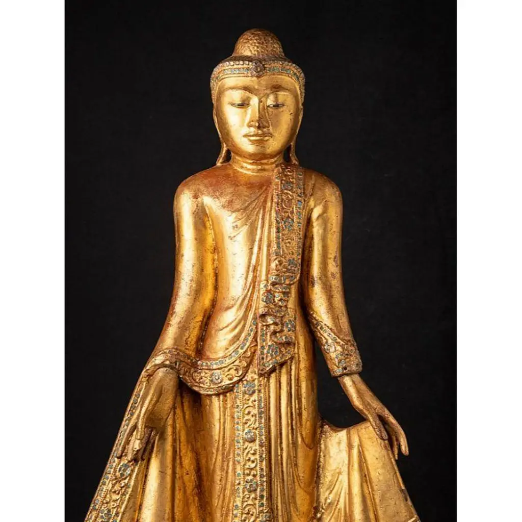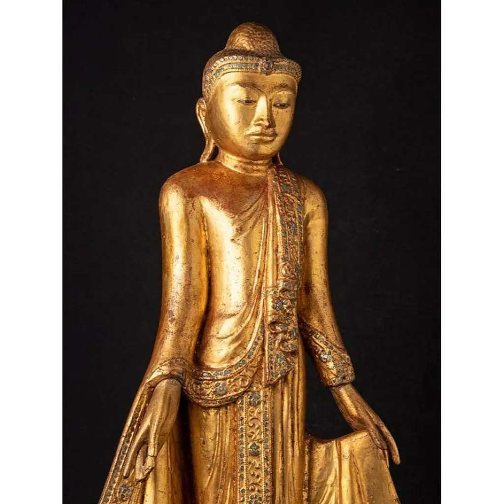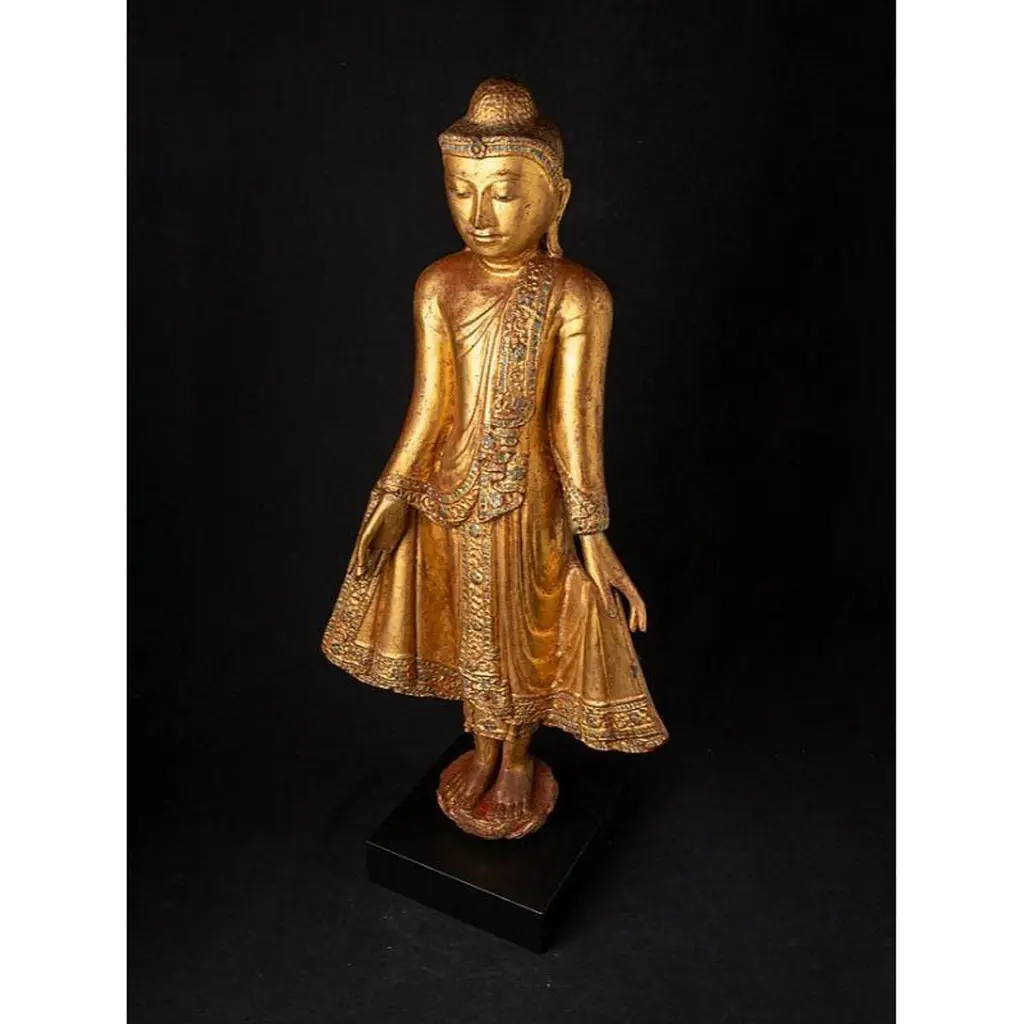 Material: wood84 cm high 39,5 cm wide and 22 cm deepWeight: 7.05 kgsGilded with 24 krt. goldMandalay styleOriginating from Burma19th centuryWith inlayed eyes