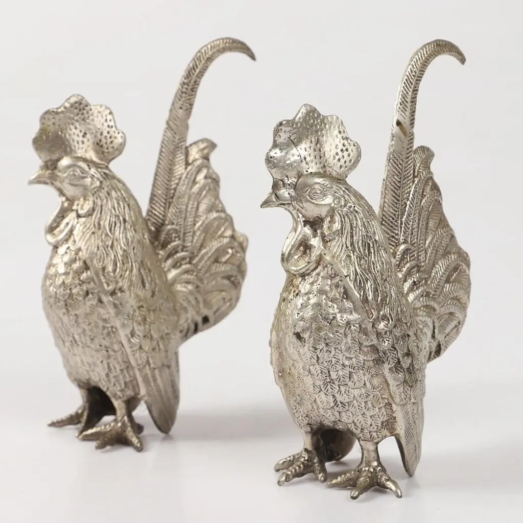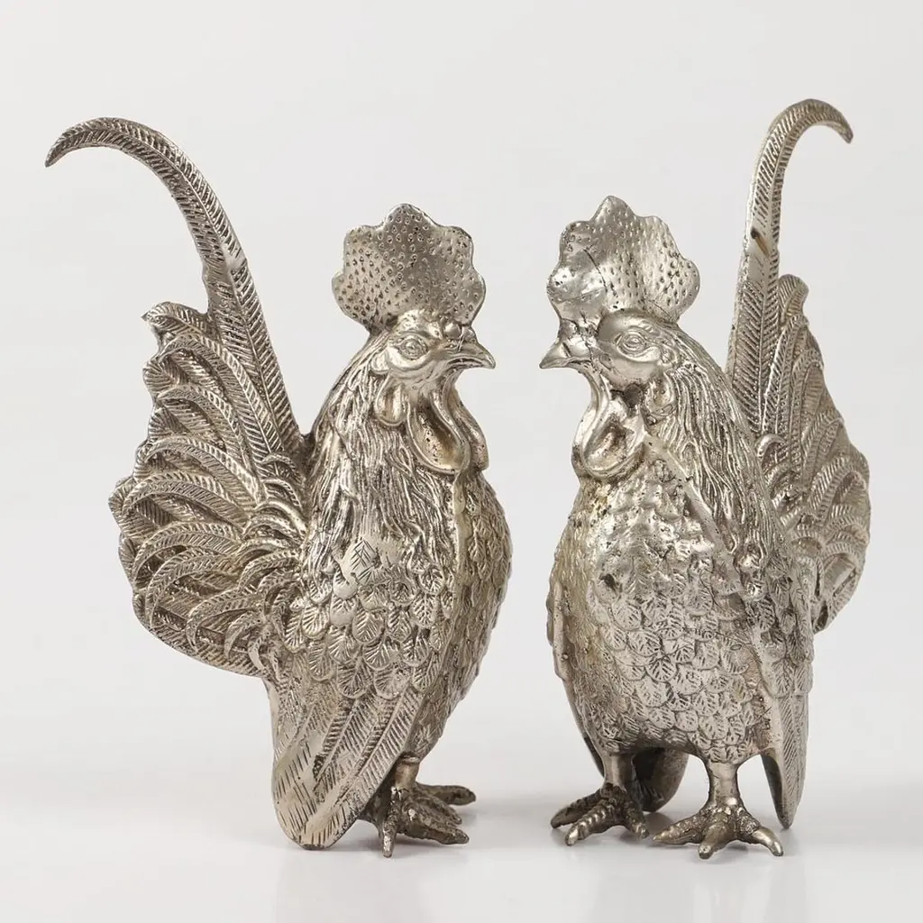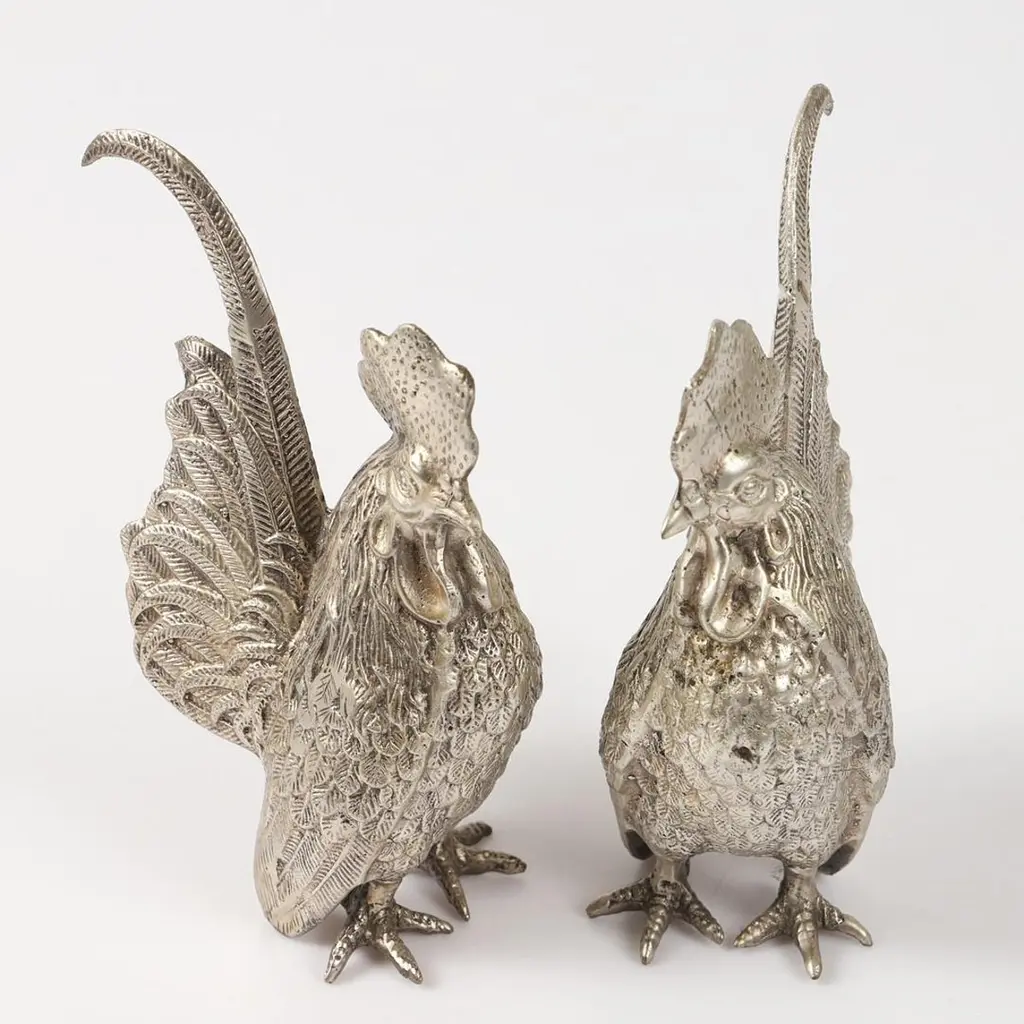 Antique Pair Of Silver Rooster Stand, Decoration Sculpture For Home Décor