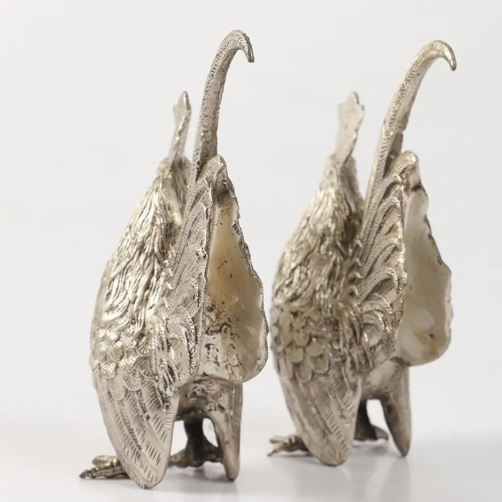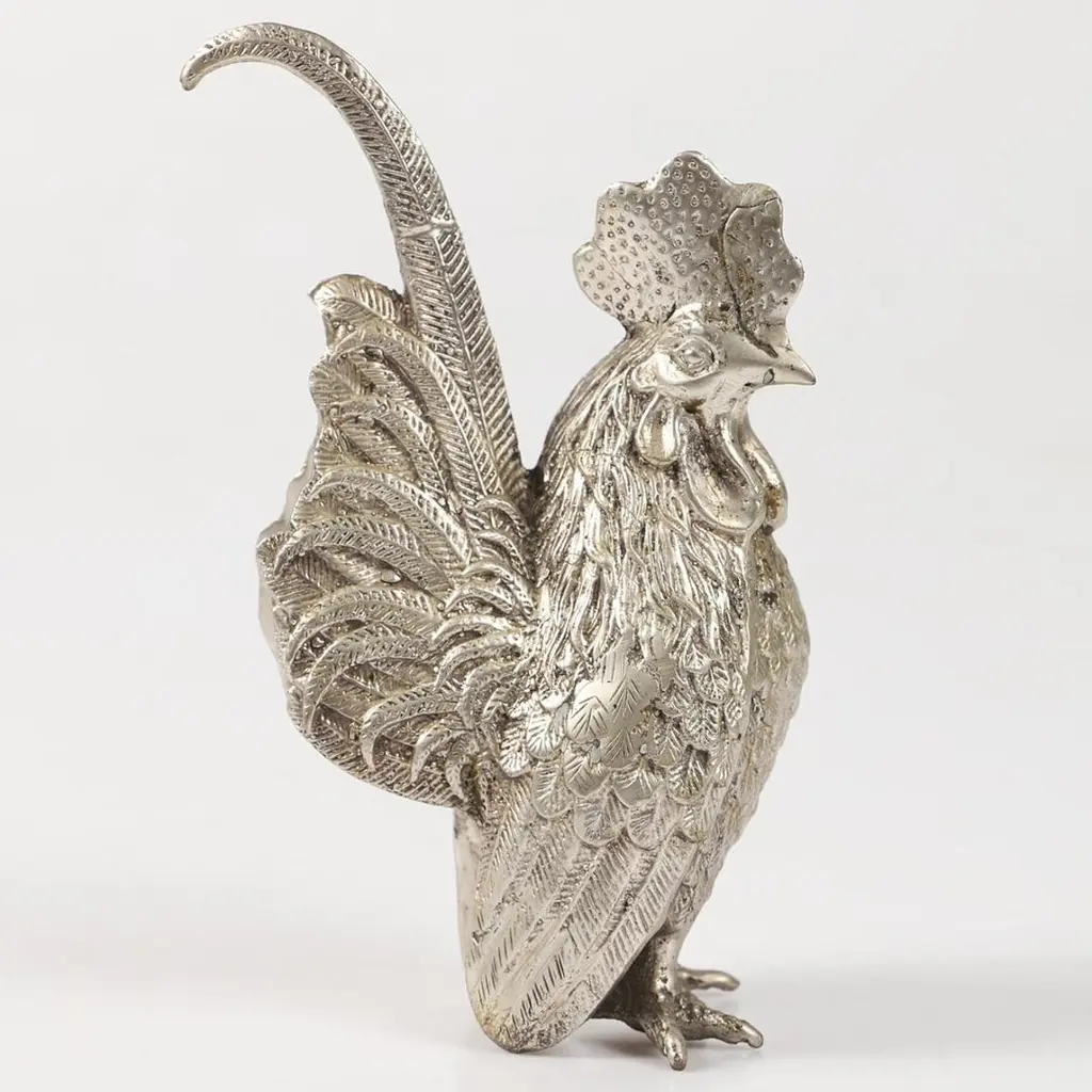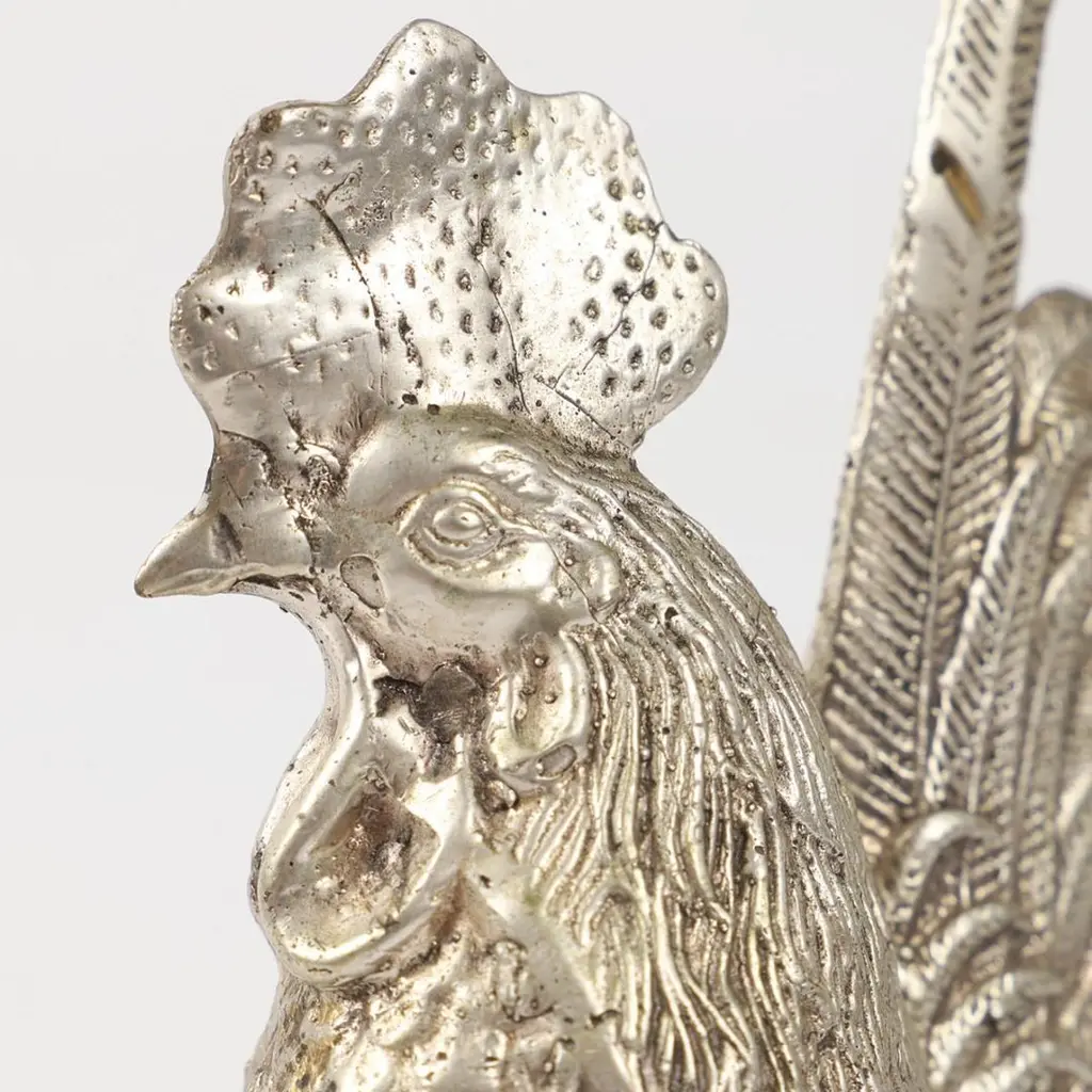 Antique Pair Of Silver Rooster Stand, Decoration Sculpture For Home Décor