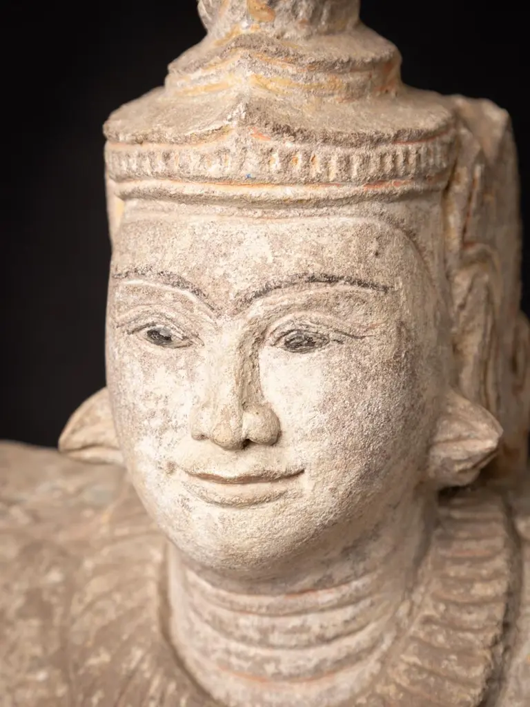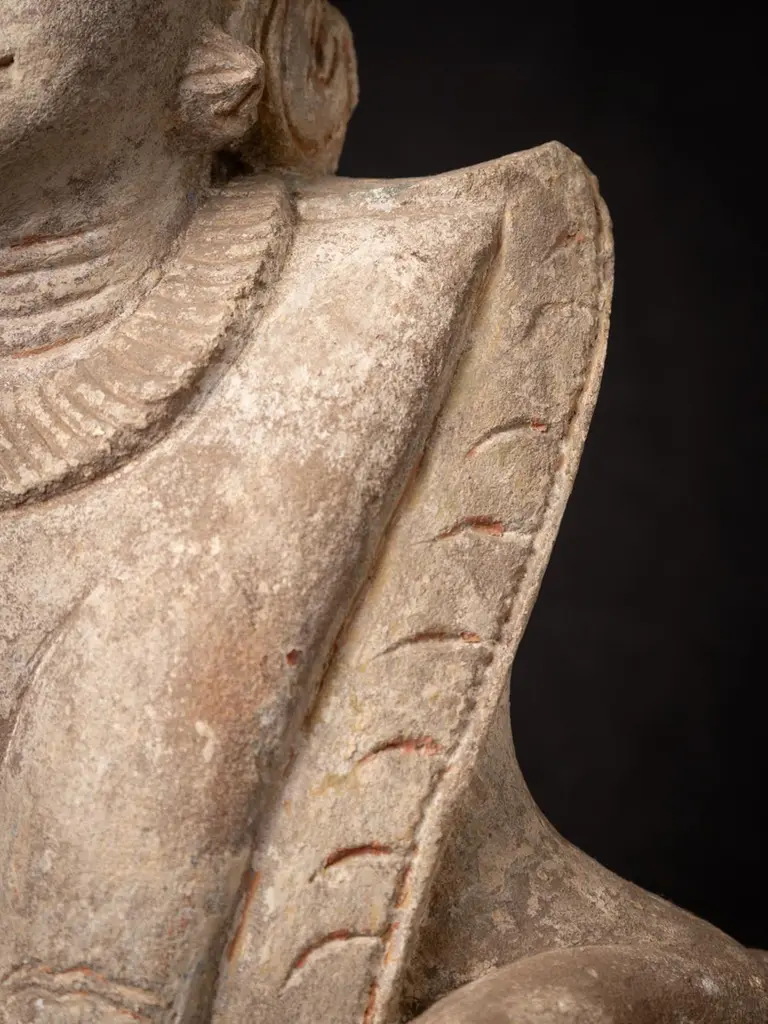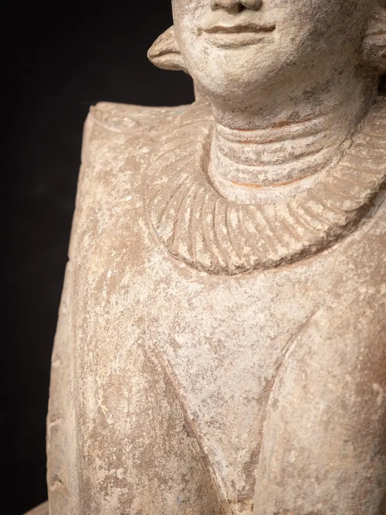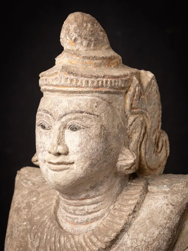 Antique sandstone Burmese Nat statueMaterial: Sandstone50 cm high30,5 cm wide and 15 cm deepBurmese name: Manuthiha17th centuryWeight: 15,8 kgsOriginating from BurmaNr: 3666-30-B