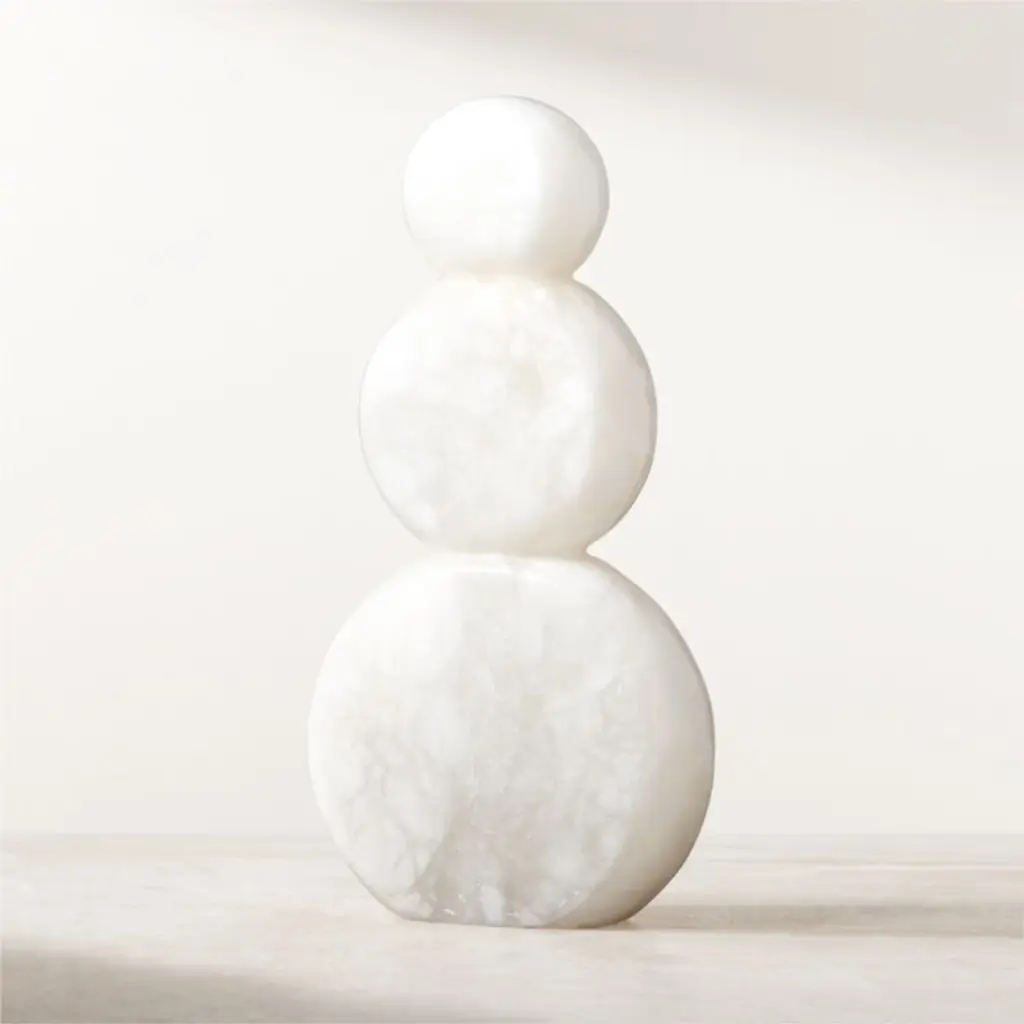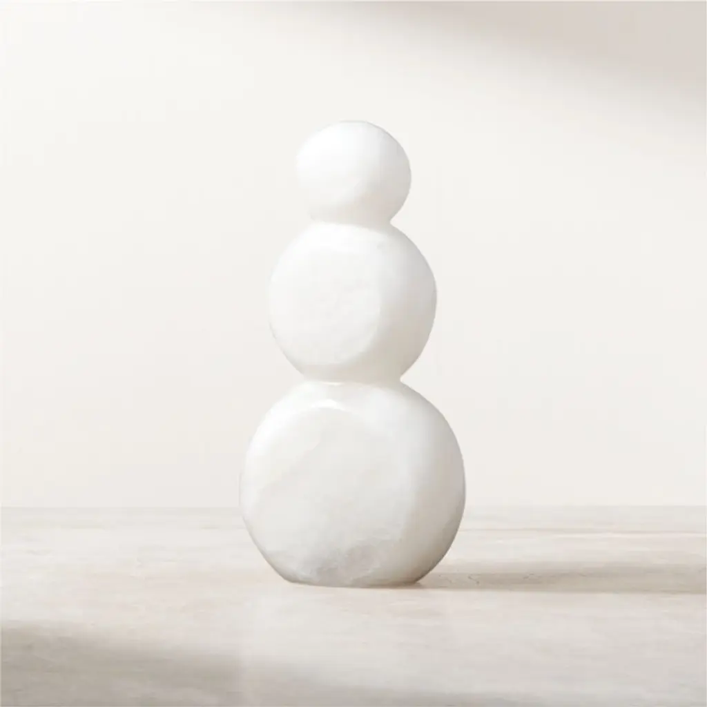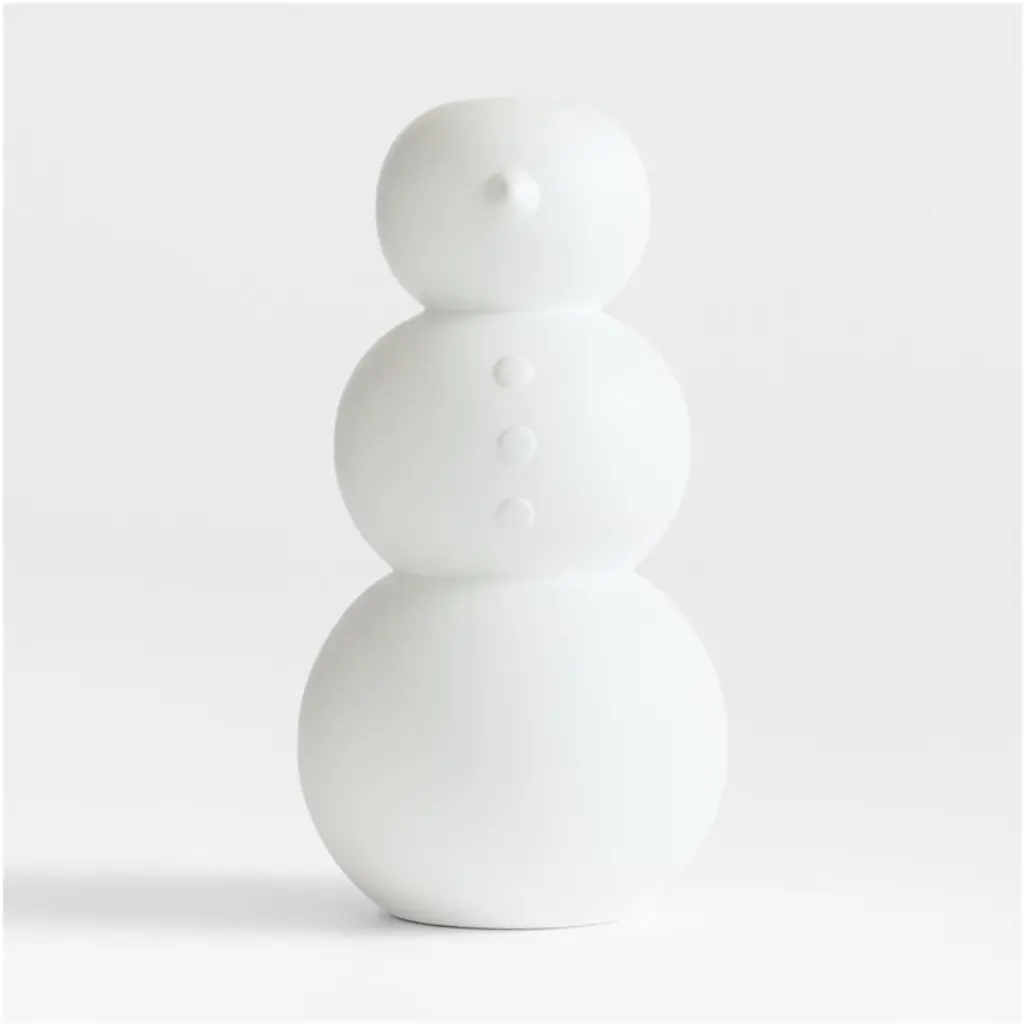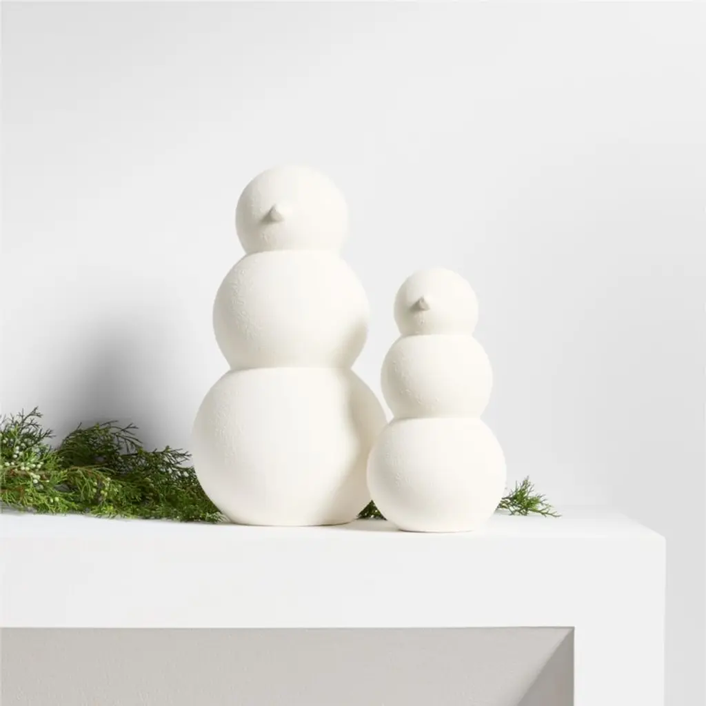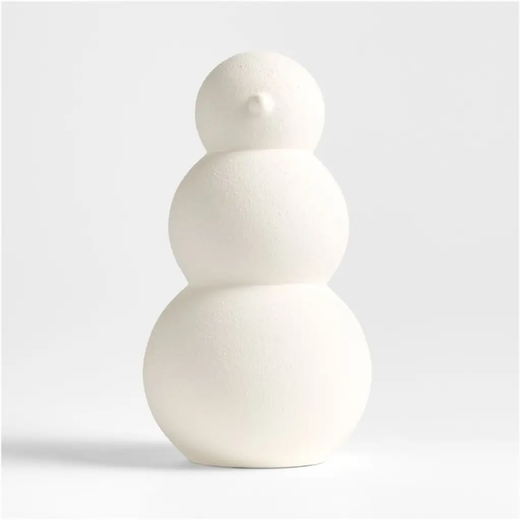 Modern-yet-nostalgic and playful with presence, our ceramic sculpture streamlines classic front yard snowmen down to clean curves (and a carrot nose, of course). Skilled artisans carve each three-snowball stack out of clay before finishing it with a textural winter-white glaze that evokes snow. Striking on its own, the snowy friend charms in multiples on a fireplace mantel, entryway console or holiday buffet.