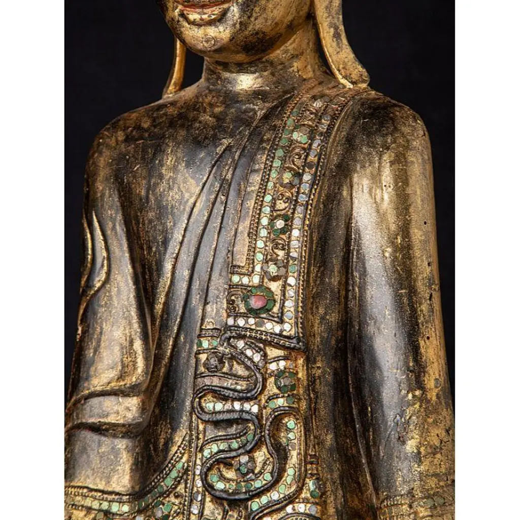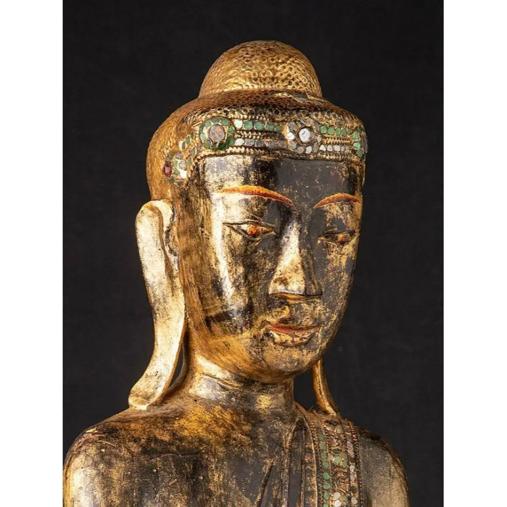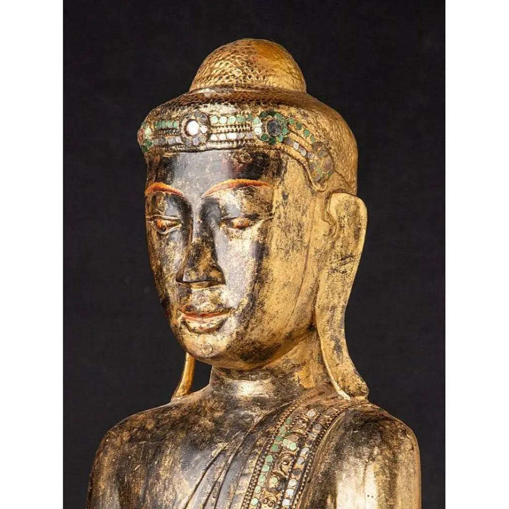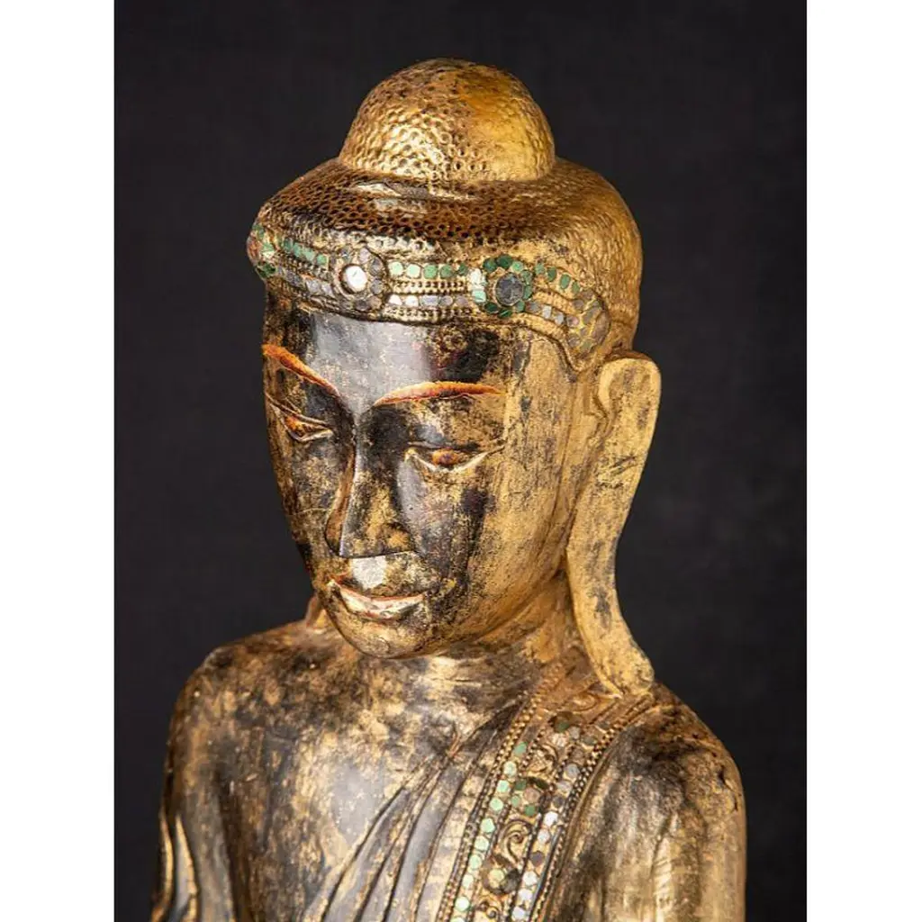 Antique Wooden Mandalay Buddha Statue From Burma