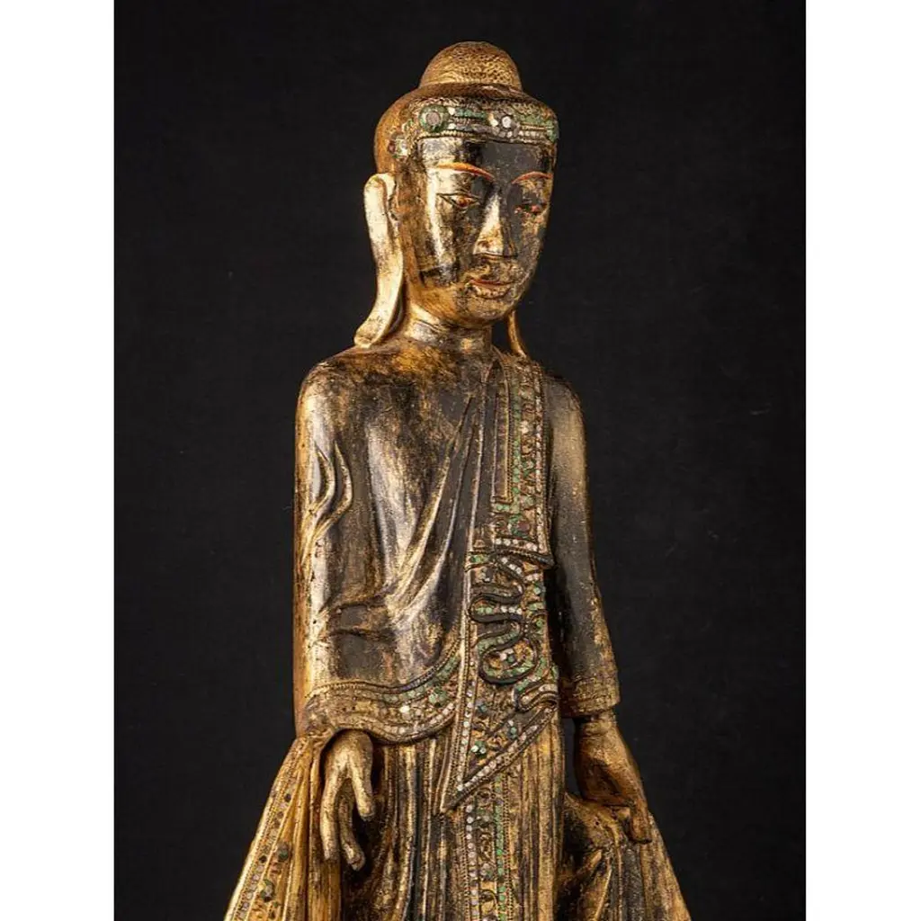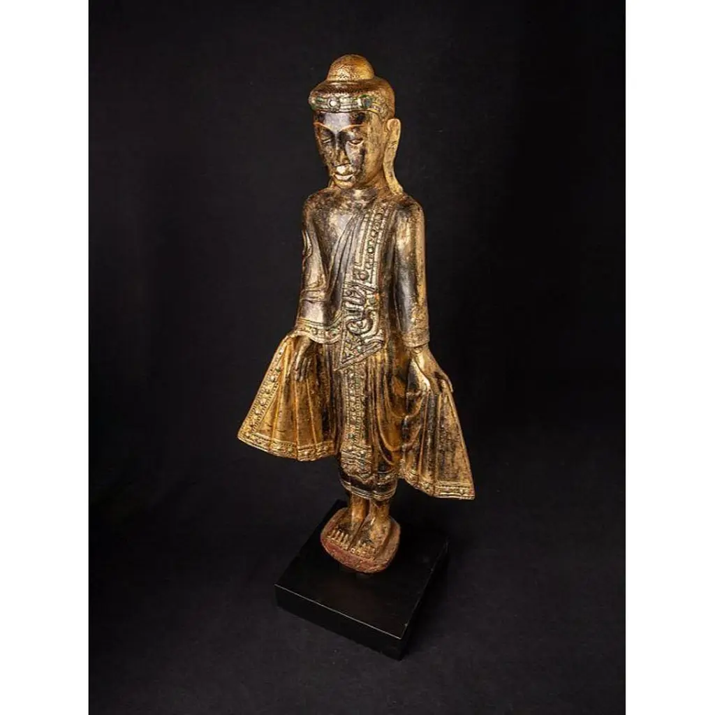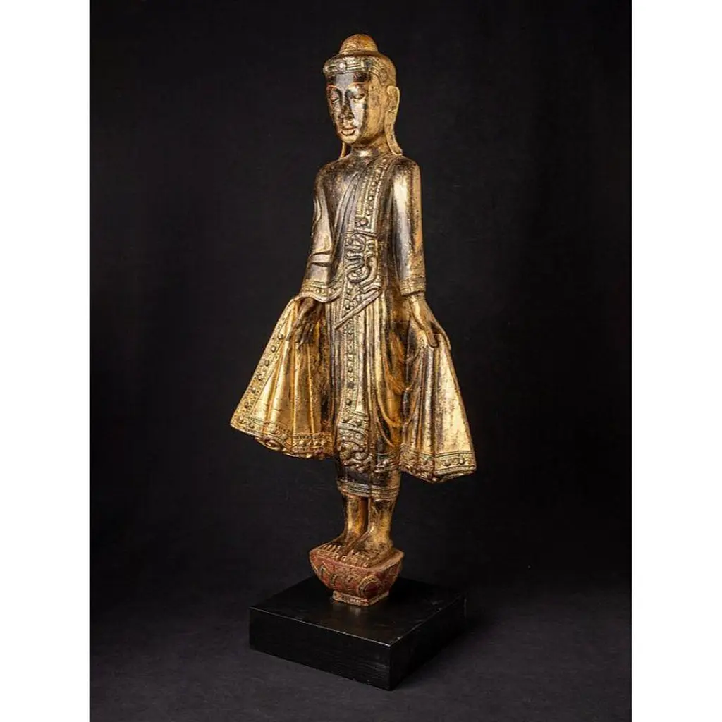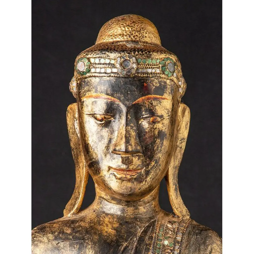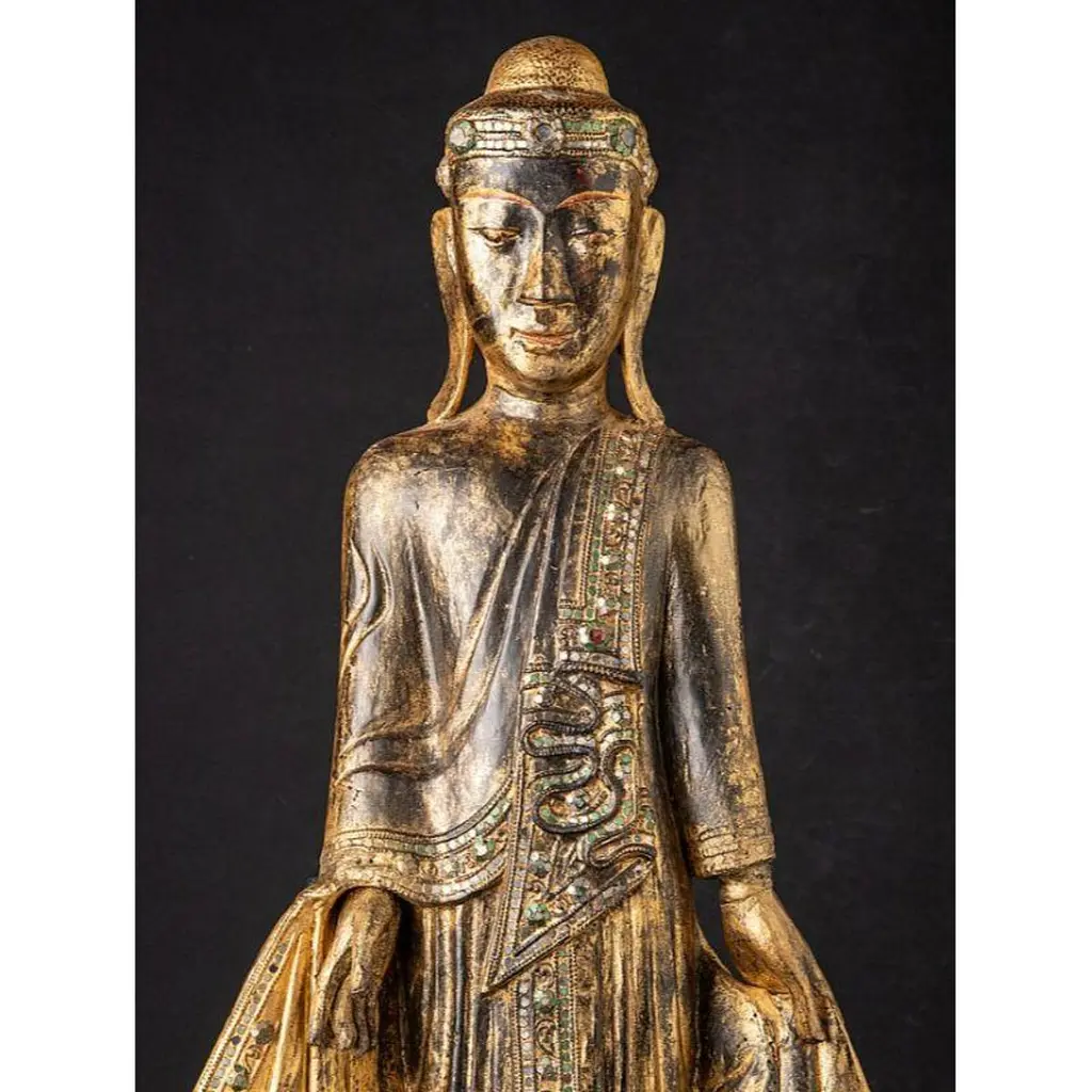 Antique Wooden Mandalay Buddha Statue From Burma