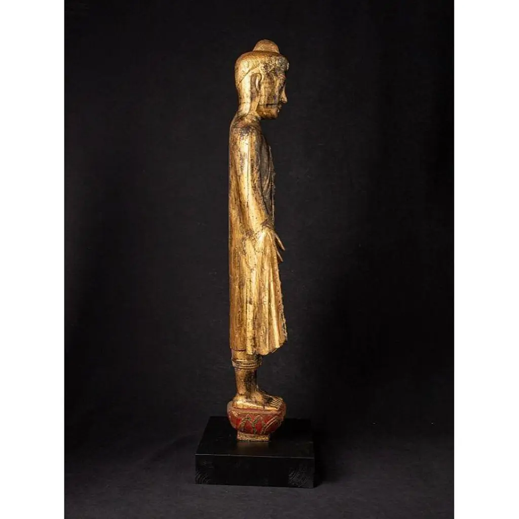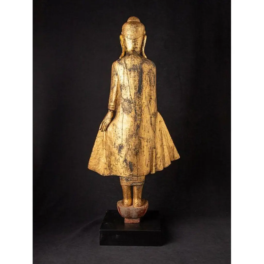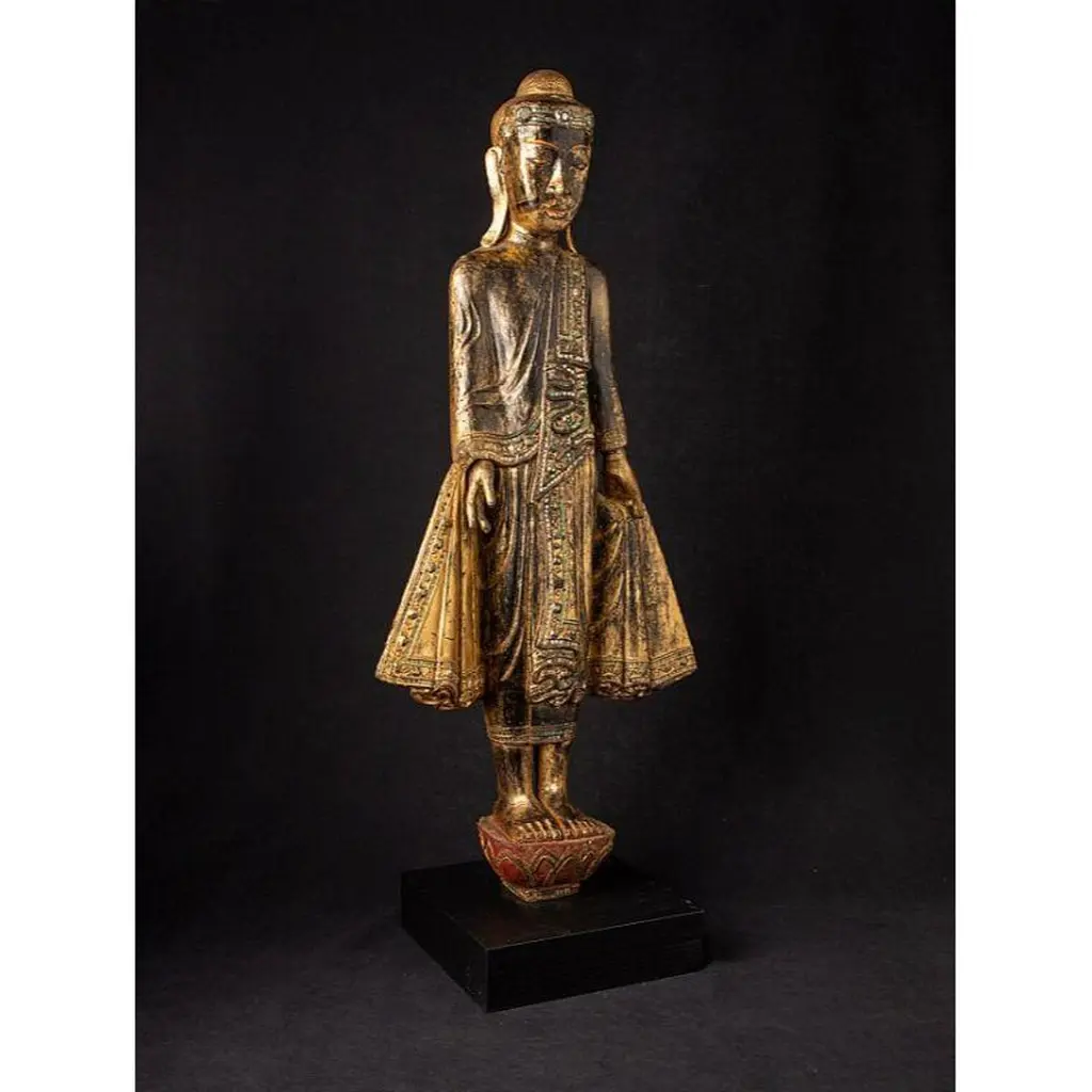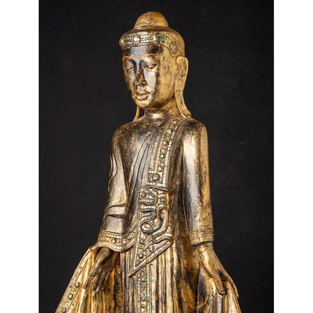 Antique Wooden Mandalay Buddha Statue From Burma