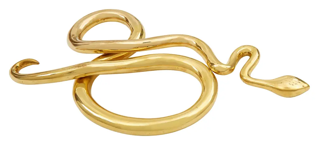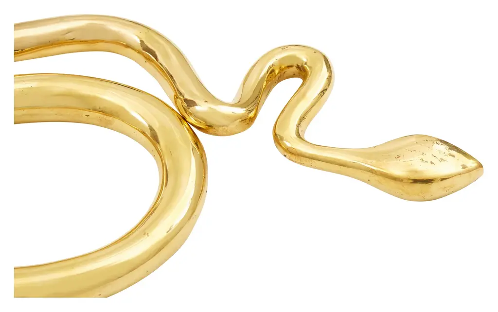 Serpents are an almost universal symbol for transformation and rebirth. With that in mind, we think our sinuous Brass Snake Sculpture makes the perfect accessory for refreshing your space. We love it on the coffee table or atop a stack of books for an exotic touch with a hint of shine. Crafted from unlacquered brass that only gets better with time, each one has a unique patina with one-of-a-kind markings and imperfections. •unlacquered brass •unique patina, tarnish and markings •one-of-a-kind Dimensions •14.25"W x 8"D x 1.5"H Unlacquered brass will naturally take on a unique patina over time. Let the process continue for a bit of timeworn, antique-inspired charm — or polish your piece regularly with a soft, non-abrasive cloth and your favorite brass cleaner to maintain its original shine.