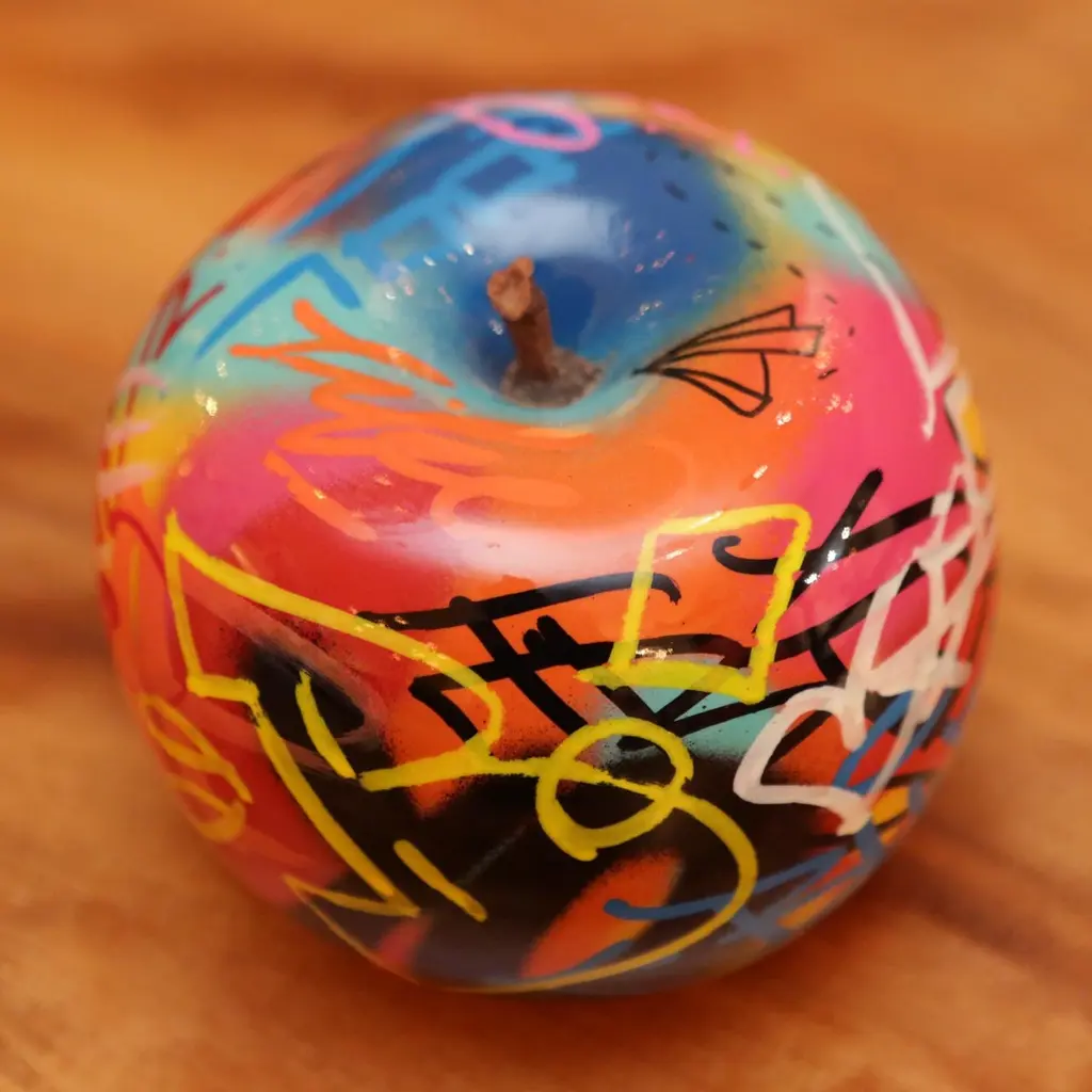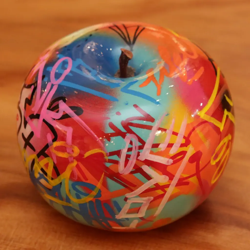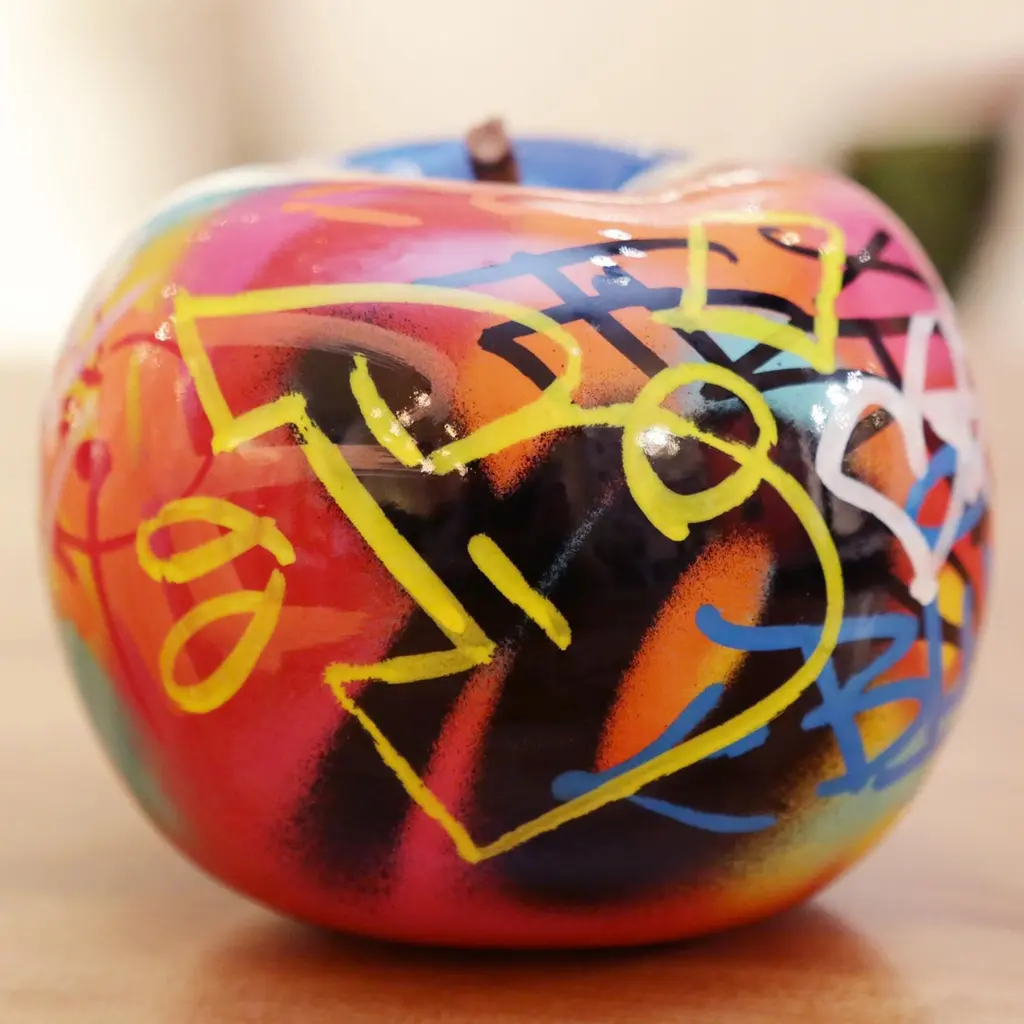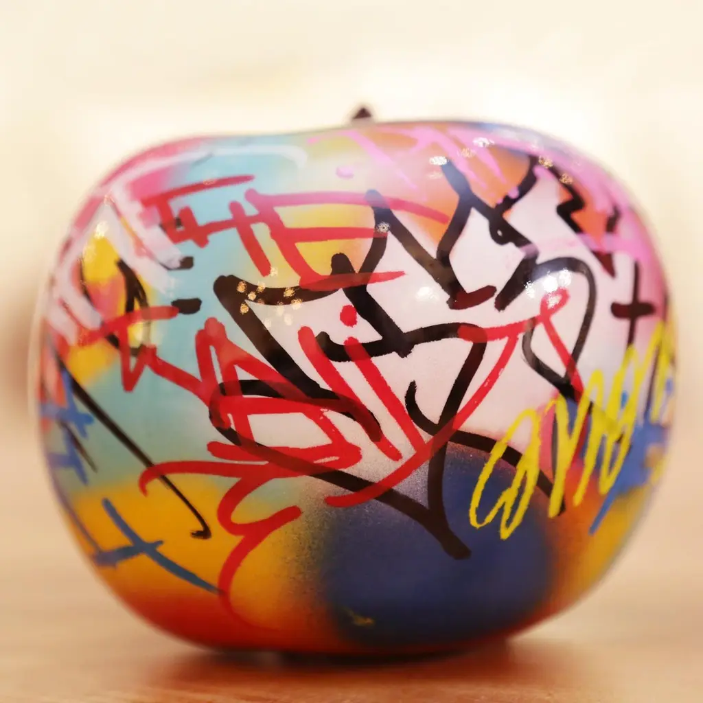 Sculpture Apple Graffiti A inhandcrafted ceramic.