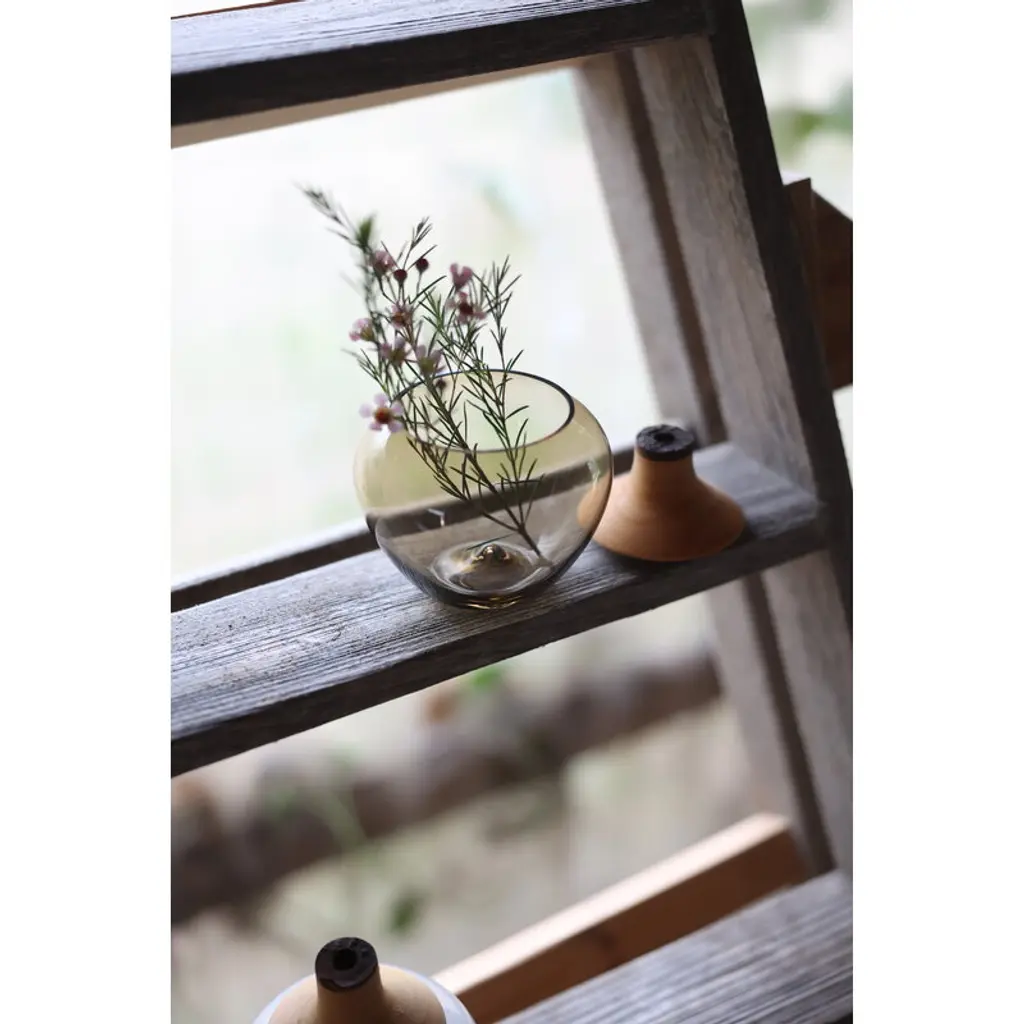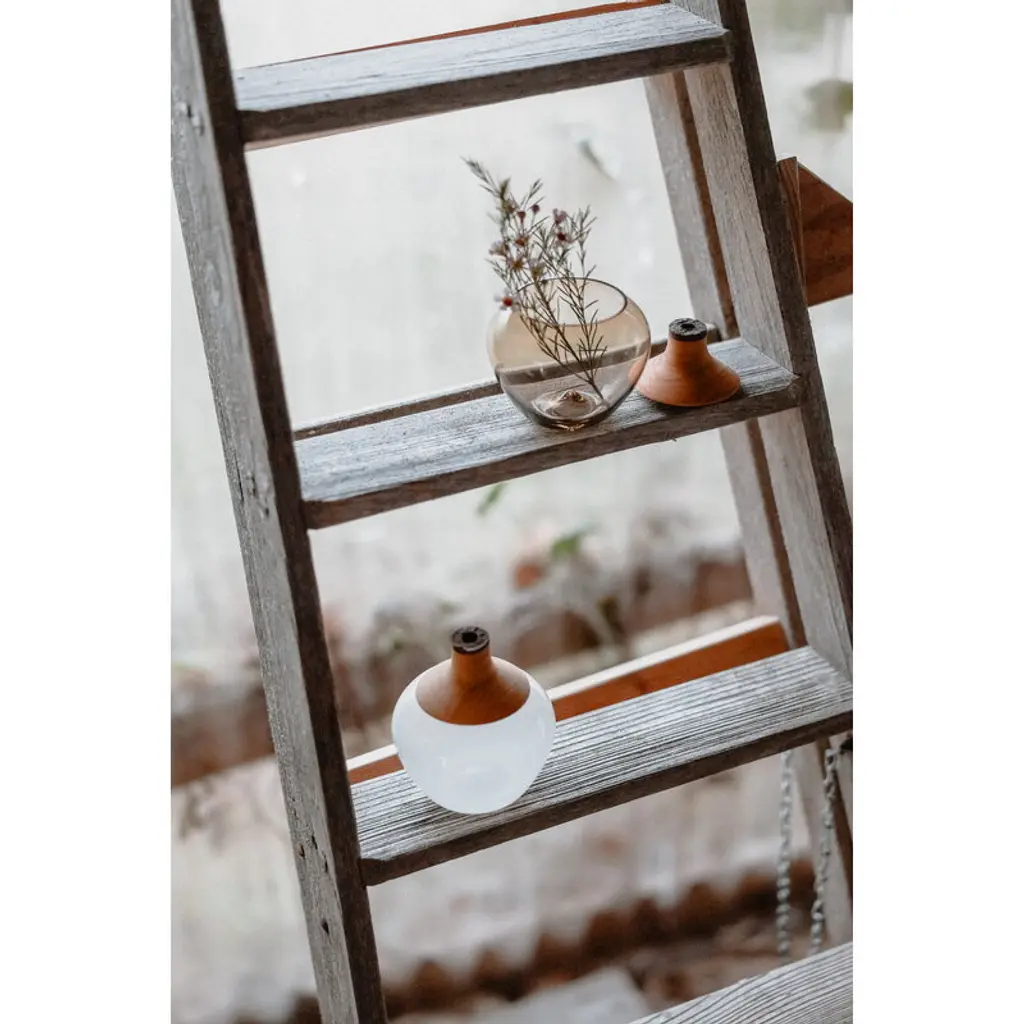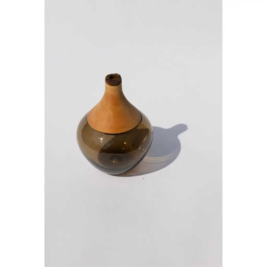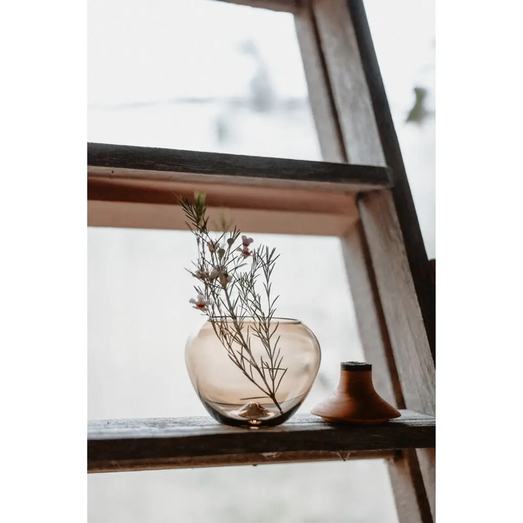 Utopia & Utility's stacking vessel Apple is a handcrafted glass sculpture designed by Finnish-German artist Pia Wüstenberg. This exquisite piece features a small glass vessel crowned by a wooden piece with beautiful, naturally unsymmetrical edges. When stacked together, the components form a striking sculpture, and while separate, the glass vessel can be used as a vase for flowers. The Stacking Vessels collection celebrates local craftsmanship, with all its pieces produced in Europe: the glass is mouth-blown in the Czech Republic, the wooden pieces hand-turned in Finland and the metal parts hand-spun in England. The final assembly takes place at Utopia & Utility's own warehouse in Northern Germany. Skillfully crafted Stacking Vessels add a captivating touch to any shelf or dining table and serve as a perfect choice for a memorable gift.