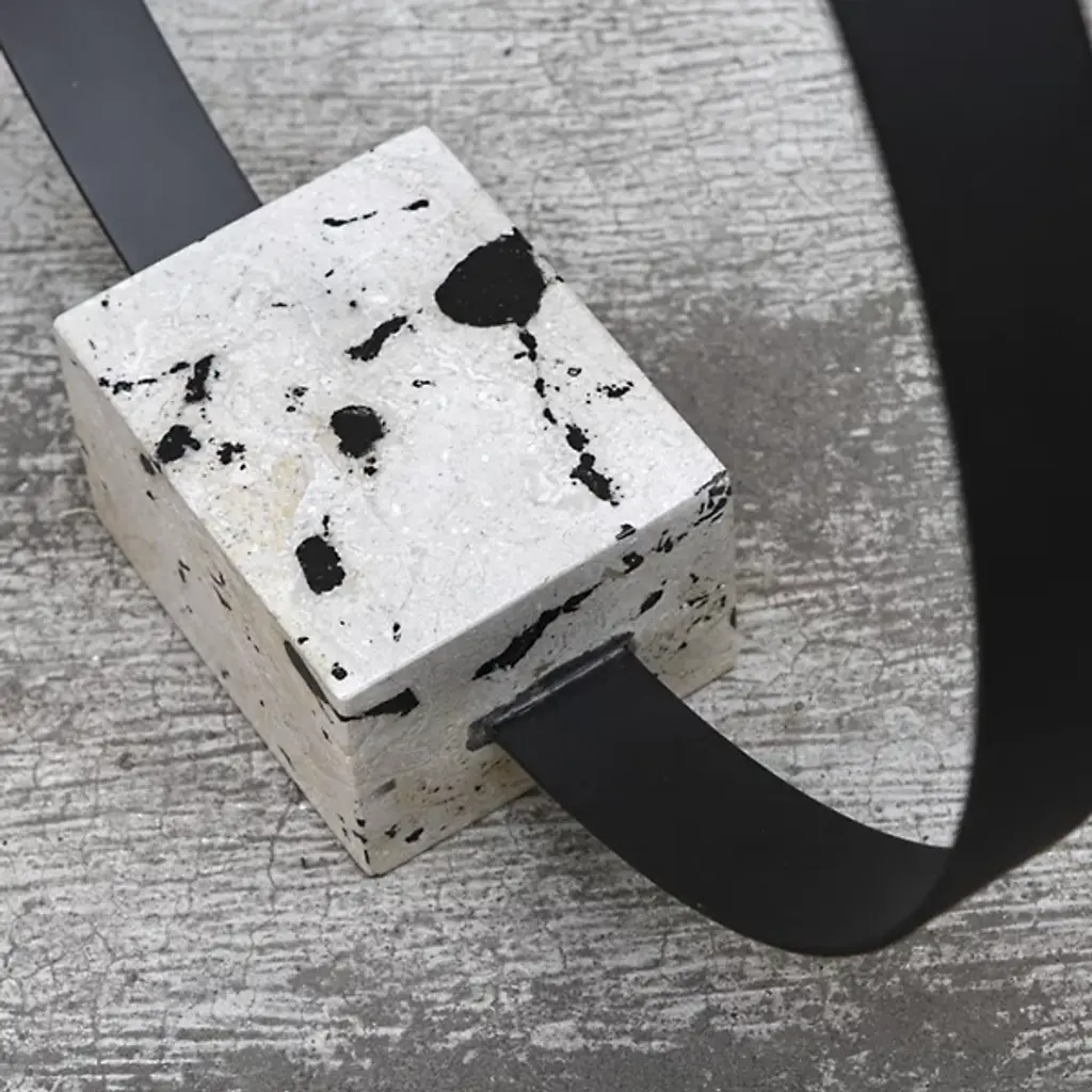 The Around Again Circular Sculpture from Uttermost defies conventional design with its perfect orbital form suspended in mid-motion. A brushed satin metal ring appears to float above its natural coral stone base, creating an illusion of perpetual movement. The stone foundation anchors the piece with dark accents that echo the metal finish, unifying the composition. This minimalist art object plays with concepts of infinity and continuity through its unbroken circular shape. Its pared-down aesthetic complements diverse interior styles while remaining a conversation-starting centerpiece.