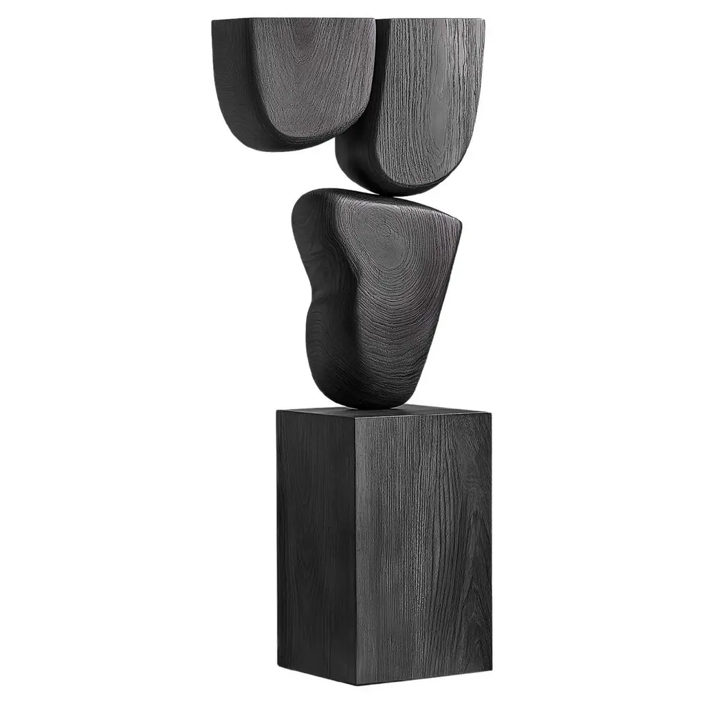 Artistic Feature Lull No33 – NONO’s Wooden Sculpture for Contemporary Spaces———Balance and tension are at the core of these sculptures. The interplay between the smooth, rounded forms and solid, angular bases creates a delicate equilibrium that invites contemplation. Fragile elements seem to find strength in their very vulnerability, constantly negotiating their own stillness. The tension remains present, yet never descends into chaos, evoking a quiet pause, a moment of serenity in the motion of life.The juxtaposition of curved, pebble-like shapes against straight-edged bases mirrors the harmony between the organic and the geometric. These forms feel both natural and sculpted, as though shaped by the slow, deliberate hand of nature and the precision of craftsmanship. It’s as if these pieces rest in a moment of perfect balance—a pause between forces that seem at odds, yet together, create something deeper and more profound.This collection embodies a monumental idea—one that celebrates the subtle tension between fragility and endurance. Though the forms may appear delicate, their strength lies in resilience. Each sculpture stands tall and quietly powerful, offering a sense of solace in stillness, a reminder that stability can emerge from the most unlikely structures.These pieces explore the delicate dance between opposing forces, where solace and tension coexist in harmony. The most meaningful moments in life often come from these pauses, from embracing the quiet spaces between movement. These sculptures whisper a truth—that transformation often finds its roots in stillness, in the spaces between tension and release.Each sculpture is crafted from solid wood in our workshop in Mexico City, ensuring no two pieces are ever alike—not only in form, but also in the natural texture and tone of the wood itself. Just as no two trees are the same, each piece carries its own unique character, shaped by the grain and color variations of the wood. This natural diversity is what makes each sculpture truly one-of-a-kind. These works are made to order, allowing the time and care needed to ensure that every piece reflects its own individuality and beauty, celebrating the organic and the serene pause within the material.——NONO is a Mexican design brand with more than 10 years of experience dedicated to the production of interior furnishings, editions, and custom-made projects. At NONO, we create pieces of extraordinary beauty, accommodating the particular needs and tastes of each client with exclusive high-quality designs.————Some details to consider when placing an order with us:• Catalog images are digitally generated. Actual products may slightly vary in texture, grain, and final finish due to natural material differences. Despite these variations, our expertise ensures each piece maintains high quality and matches the intended design.• All of our products are made to order, and the lead time for standard products is estimated to be 9 to 12 weeks, plus shipping time. However, special pieces or sculptures may require a longer lead time.• We offer customization in dimensions and finish for all of our furniture pieces, which may result in additional charges.• We only facilitate freight services by a third party. The client is solely responsible for any associated import/export taxes, as well as any necessary customs paperwork.• We are not responsible for any damages that may occur during shipping or for any customs-related delays.