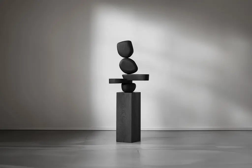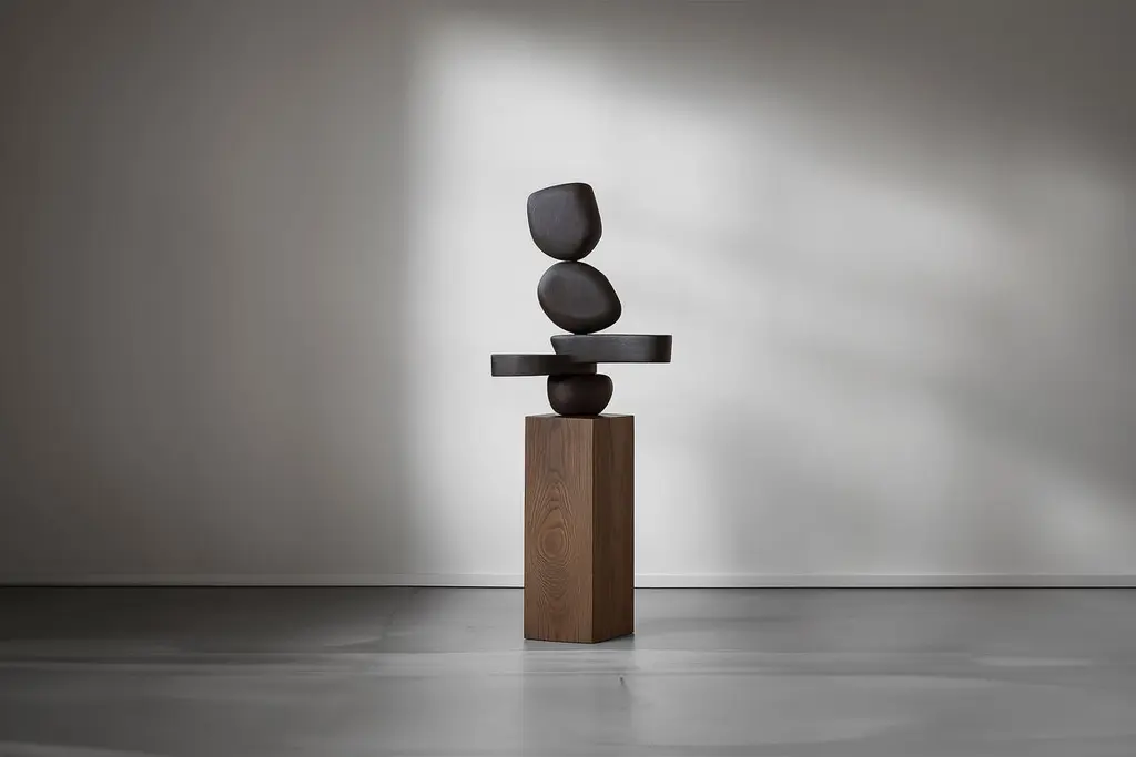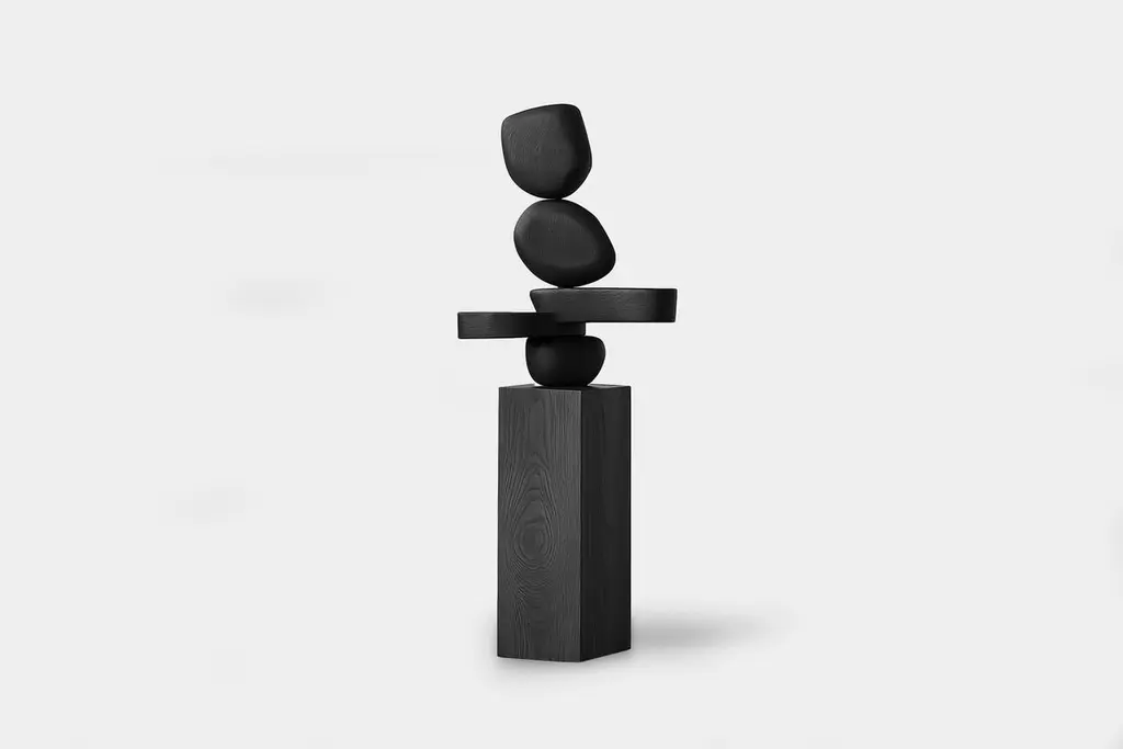 Lull No144 Wooden Totem Sculpture by Joel Escalona – A Sculptural Accent———Balance and tension are at the core of these sculptures. The interplay between the smooth, rounded forms and solid, angular bases creates a delicate equilibrium that invites contemplation. Fragile elements seem to find strength in their very vulnerability, constantly negotiating their own stillness. The tension remains present, yet never descends into chaos, evoking a quiet pause, a moment of serenity in the motion of life.The juxtaposition of curved, pebble-like shapes against straight-edged bases mirrors the harmony between the organic and the geometric. These forms feel both natural and sculpted, as though shaped by the slow, deliberate hand of nature and the precision of craftsmanship. It’s as if these pieces rest in a moment of perfect balance—a pause between forces that seem at odds, yet together, create something deeper and more profound.This collection embodies a monumental idea—one that celebrates the subtle tension between fragility and endurance. Though the forms may appear delicate, their strength lies in resilience. Each sculpture stands tall and quietly powerful, offering a sense of solace in stillness, a reminder that stability can emerge from the most unlikely structures.These pieces explore the delicate dance between opposing forces, where solace and tension coexist in harmony. The most meaningful moments in life often come from these pauses, from embracing the quiet spaces between movement. These sculptures whisper a truth—that transformation often finds its roots in stillness, in the spaces between tension and release.Each sculpture is crafted from solid wood in our workshop in Mexico City, ensuring no two pieces are ever alike—not only in form, but also in the natural texture and tone of the wood itself. Just as no two trees are the same, each piece carries its own unique character, shaped by the grain and color variations of the wood. This natural diversity is what makes each sculpture truly one-of-a-kind. These works are made to order, allowing the time and care needed to ensure that every piece reflects its own individuality and beauty, celebrating the organic and the serene pause within the material.——NONO is a Mexican design brand with more than 10 years of experience dedicated to the production of interior furnishings, editions, and custom-made projects. At NONO, we create pieces of extraordinary beauty, accommodating the particular needs and tastes of each client with exclusive high-quality designs.————Some details to consider when placing an order with us:• Catalog images are digitally generated. Actual products may slightly vary in texture, grain, and final finish due to natural material differences. Despite these variations, our expertise ensures each piece maintains high quality and matches the intended design.• All of our products are made to order, and the lead time for standard products is estimated to be 9 to 12 weeks, plus shipping time. However, special pieces or sculptures may require a longer lead time.• We offer customization in dimensions and finish for all of our furniture pieces, which may result in additional charges.• We only facilitate freight services by a third party. The client is solely responsible for any associated import/export taxes, as well as any necessary customs paperwork.• We are not responsible for any damages that may occur during shipping or for any customs-related delays.