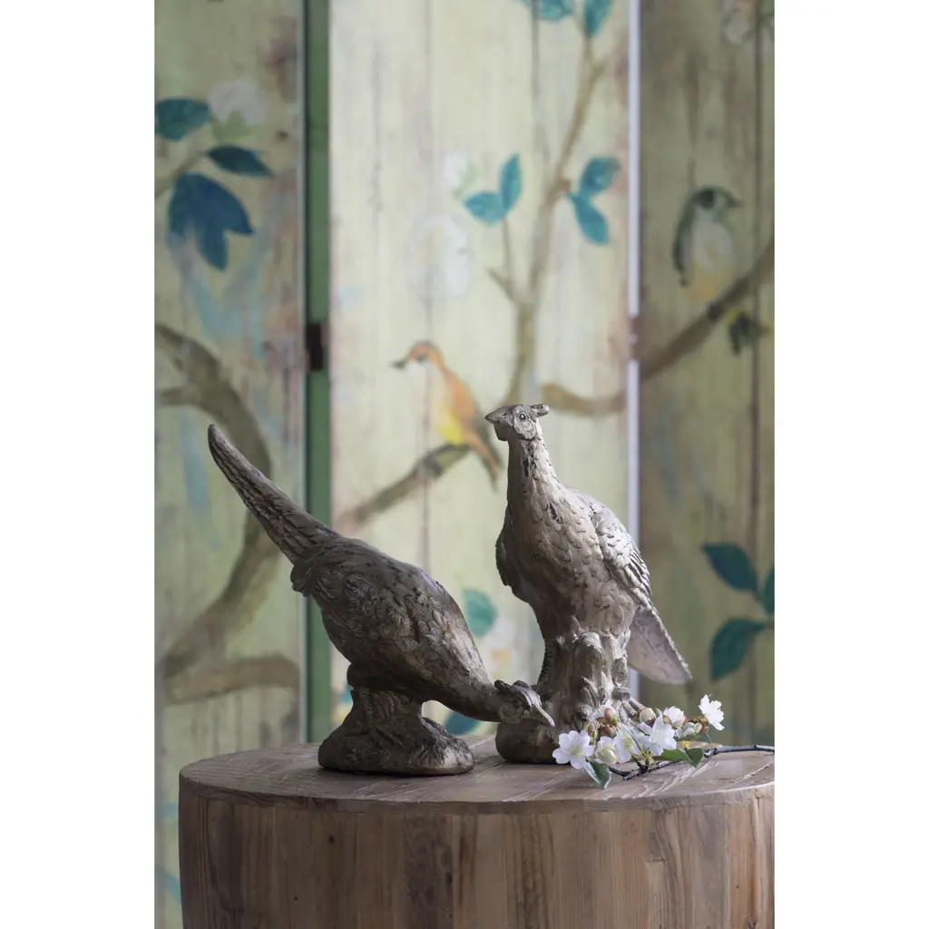 This Arturo Pheasant Accent exudes vintage glamour as it captures the sleek lines and subtle detailing of a grazing pheasant. Place this accent piece atop a grand mantle, beside a hearth, or nestled amongst house plants and watch as the luxurious bronze finish radiates warmth throughout the room. The large size of this piece makes it an impressive addition to a living room, sunroom, or library.