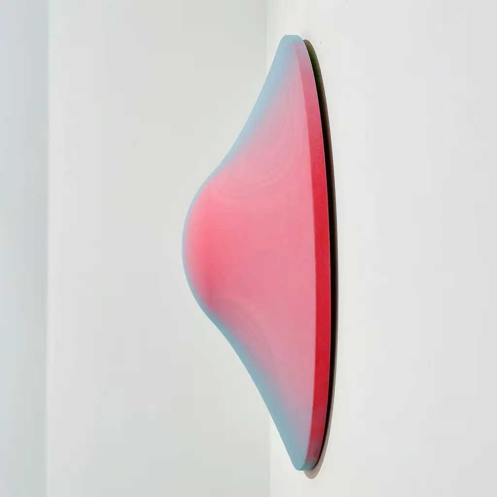Edoardo Modenese reimagines kinetic art through layering and molding of synthetic fabrics over geometric forms. These works play with solids and voids, light and shadow, using ever-changing hues and the power of color to create kinetic and perceptual illusions. His work is not static but has its own aura, transforming the abstract into something deeply evocative. The lines between painting, sculpture, and industrial products are blurred, inviting viewers to explore the adventures of perception.