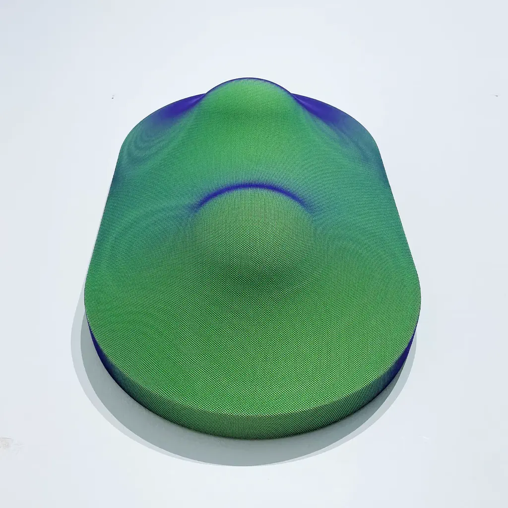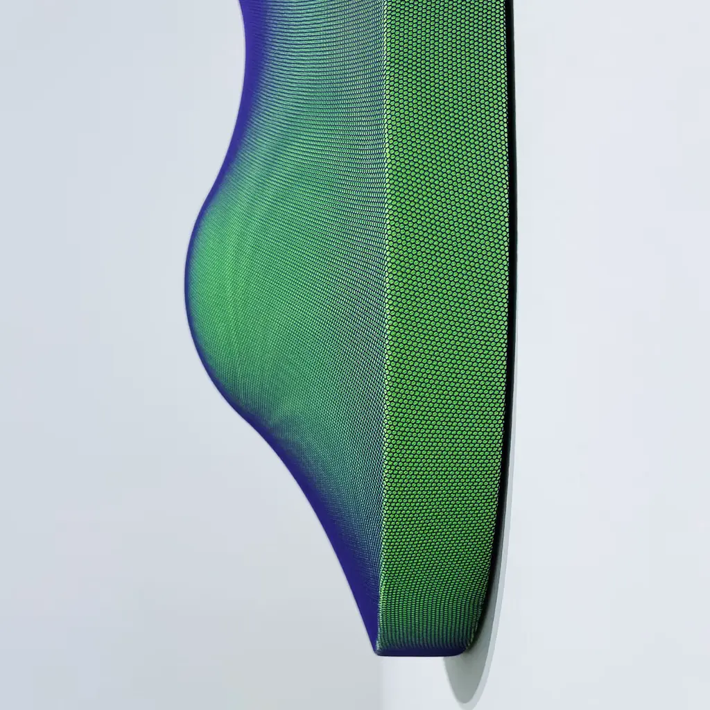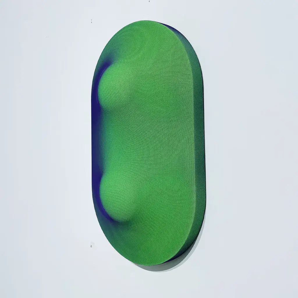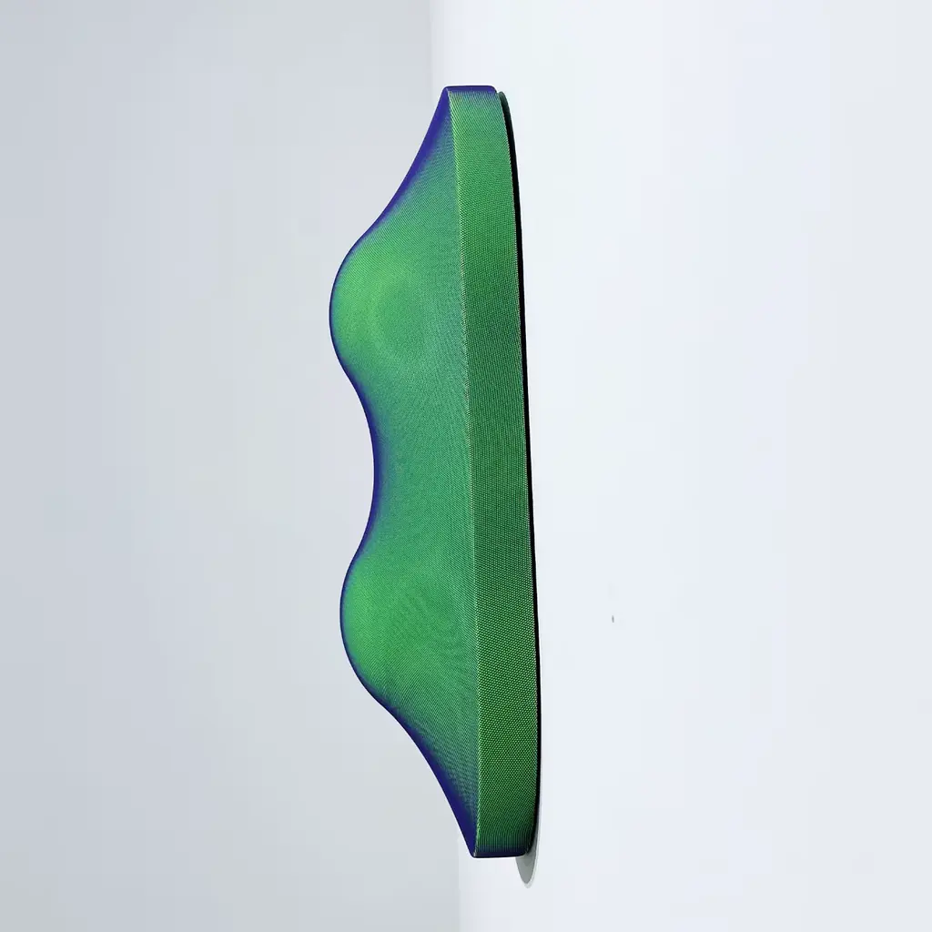 Edoardo Modenese reimagines kinetic art through layering and molding of synthetic fabrics over geometric forms. These works play with solids and voids, light and shadow, using ever-changing hues and the power of color to create kinetic and perceptual illusions. His work is not static but has its own aura, transforming the abstract into something deeply evocative. The lines between painting, sculpture, and industrial products are blurred, inviting viewers to explore the adventures of perception.