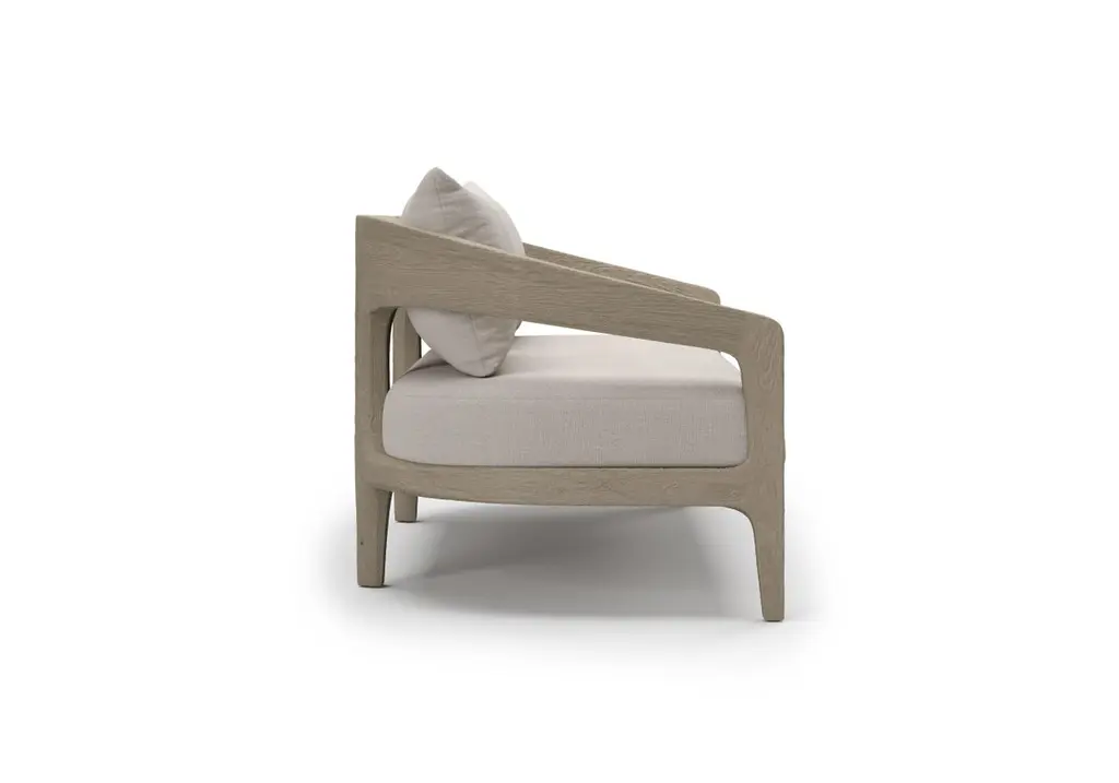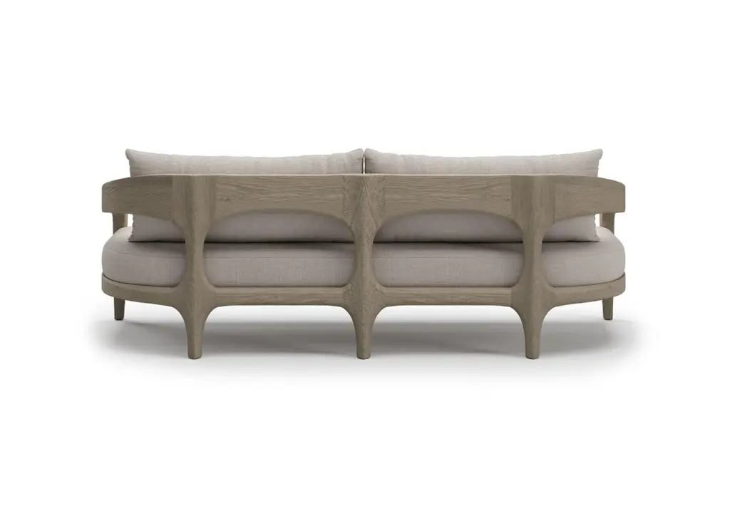 Ash Whale Seater Sofa 2 by SNOCDimensions: W 190 x D 84 x H 66 cm.Materials: Teak Wood. The Whale-ash Collection features an elegant and robust design style inspired by the form of a whale skeleton. This unique collection is crafted by combining sustainable and natural materials with the exceptional quality of Teak wood. Strong and thick lines in the vertical plane enhance the design, while the structure in the horizontal plane captures attention. In addition to its skeletal framework, the Whale-ash Collection provides a comfortable experience with its broad seating details, offering users not only aesthetic appeal but also ergonomic comfort. Sunbrella fabric details in natural Teak and Black Teak color options, along with a table crafted from sand and epoxy materials, complement the SNOC Collections, including lounge sets, dining sets, and daybeds.SnocSince their foundation in 2004, SNOC’s history has been interwoven with that of international design. Each chapter written with care, each product reflecting its passion. The company understands that a real story exists behind each object and behind that story, a real person desiring something more. Their ever-developing methodology focuses on defining the core of a brand and utilizing those characteristics to help nurture its soul, aiding in forging real connections. This approach , results in their unique “work in progress” style: original, versatile solutions that in their signature blend of sound, vision and design best-suit every environment and situation, arousing a range of emotions on a daily basis as well as standing the test of time.Driven by functional research, an inclusive project and product culture, and deep care for the environment, we exist as the timeless yet present essence of outdoor furniture design elevating private and public space a like with thoughtfully presented, endlessly adaptive creations.