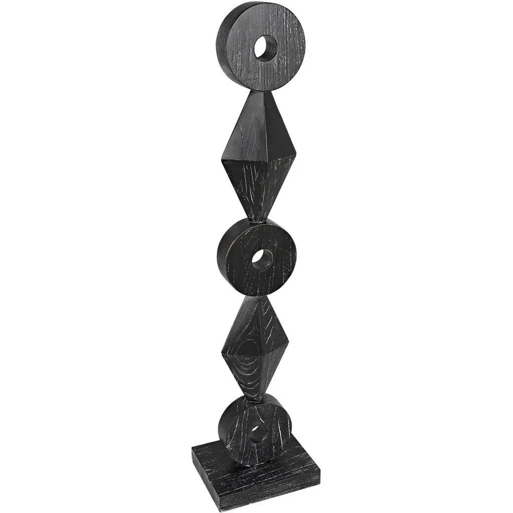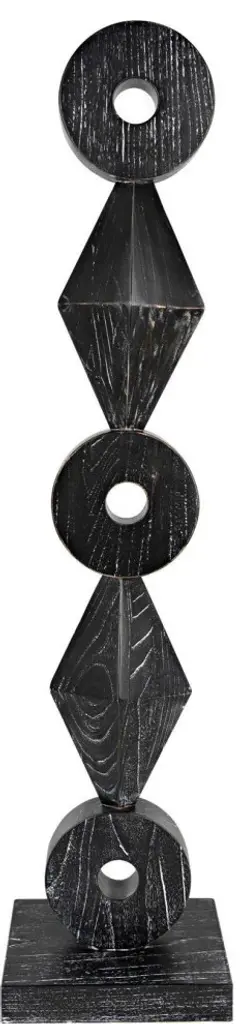 These Ashlea sculptures feature natural mango wood logs on matte black iron metal bases. The set of 2 includes one small log and one large log.