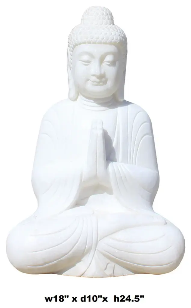 Unique white stone Buddha statue, suitable for indoor and outdoor garden decoration, This statue is carved of white stone, Buddha is in a zen meditation lotus sitting position, serene peaceful face with both hands crossing in front. Buddha is a good luck statue for home feng shui, it''s teaching is also a great reminder for our everyday life. Dimensions: w18" x d10" x h24.5"Origin: ChinaMaterial: StoneCondition: Handmade, vintage finish, variation in stone marksWork: Ship on a pallet, curbside drop offUS domestic continental buyer of 48 states pays 380 shipping charges for curbside delivery. Customer from Hawaii, Alaska, US Island, Florida Keywest, and Canada pays extra shipping cost. Insurance and handling charge are already included in the shipping cost. In-store pick-up is highly welcomed if you are in San Francisco Bay Area. (No charge) White-Glove service can be arranged at an additional cost.For customer who is looking to buy multiple items. We can either combine "œseveral items on the same pallet "œor "œinclude small items inside the largest item as long as it fits in"�When your shipment is delivered, carefully inspect the outside of the packaging before the delivery personnel leave. It is important to clearly indicate if there is any visible damage to the packaging or items on the delivery paperwork. Carriers usually do not honor concealed damage claims so it is crucial to clearly indicate any visible damage to the packaging or items on the delivery paperwork.