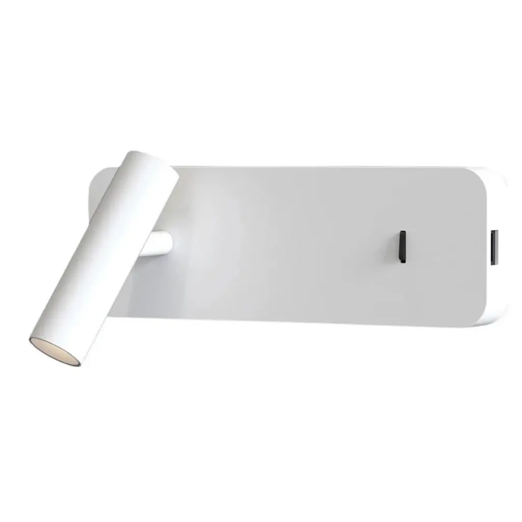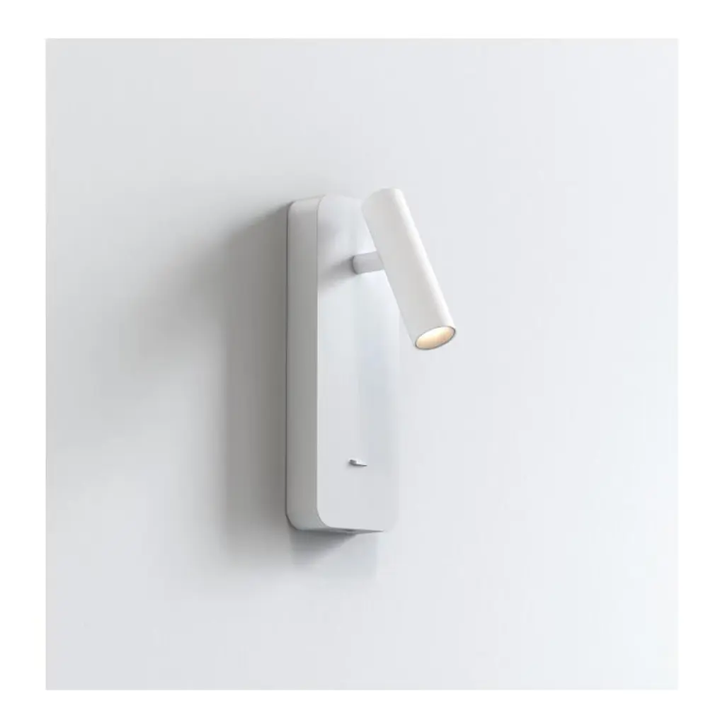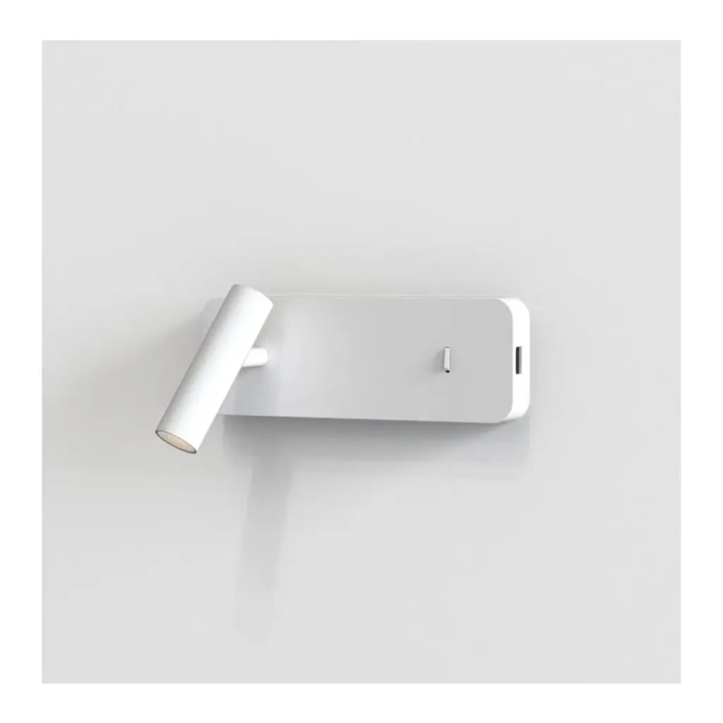Astro Enna Surface USB Indoor Reading Light in Matt WhiteIncorporating a range of intelligent features such as low-glare integrated LEDS, adjustable heads and USB charging ports, the Enna collection of wall, desk and floor lights offers versatile solutions for hotel guest bedrooms. Its streamlined, slender design, characterized by cylindrical heads and slim stem bases, blends seamlessly into contemporary interiors. Enna is crafted with Astro's signature robust construction and is intended to withstand prolonged everyday use. It comes in four timeless finishes to suit any d̩cor: matt nickel, bronze, matt white or matt black.In the Box: Diagramatic Instructions in six languages (English, French, German, Italian, Polish, Spanish). Complete with convenient screw pack which includes the screws and fixings required for mounting on a solid wall.