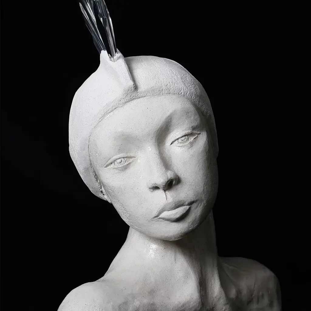 The Atena Ceramic Sculpture embodies strength, wisdom and protection, drawing inspiration from the deity known for her balance of intellect and courage. This striking piece features a regal visage with an austere beauty, symbolizing the timeless power of femininity. Crafted from semi-refractory clay adorned with crystals, the sculpture highlights meticulous artistry and an elegant presence. Ideal for enhancing any art collection or as a statement piece in home decor, it stands as a powerful emblem of grace and resilience, inviting contemplation and admiration.