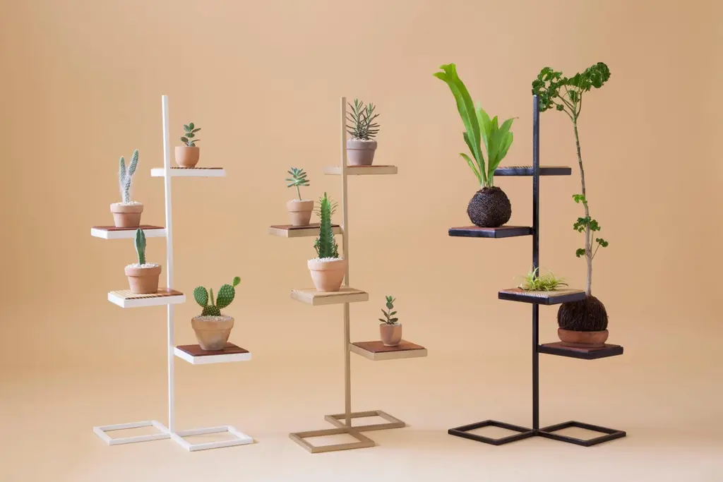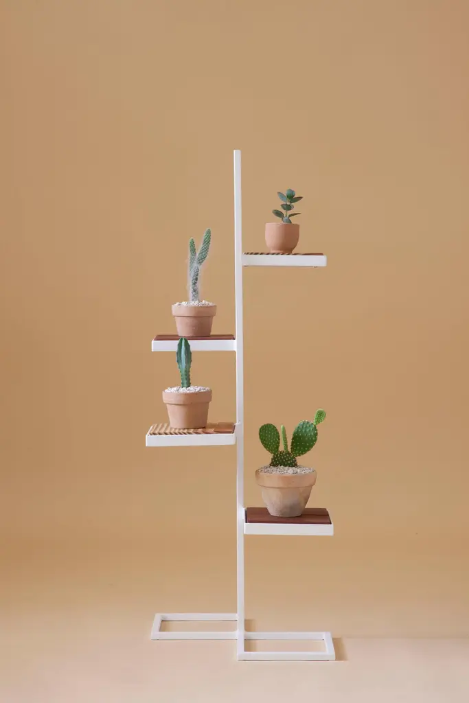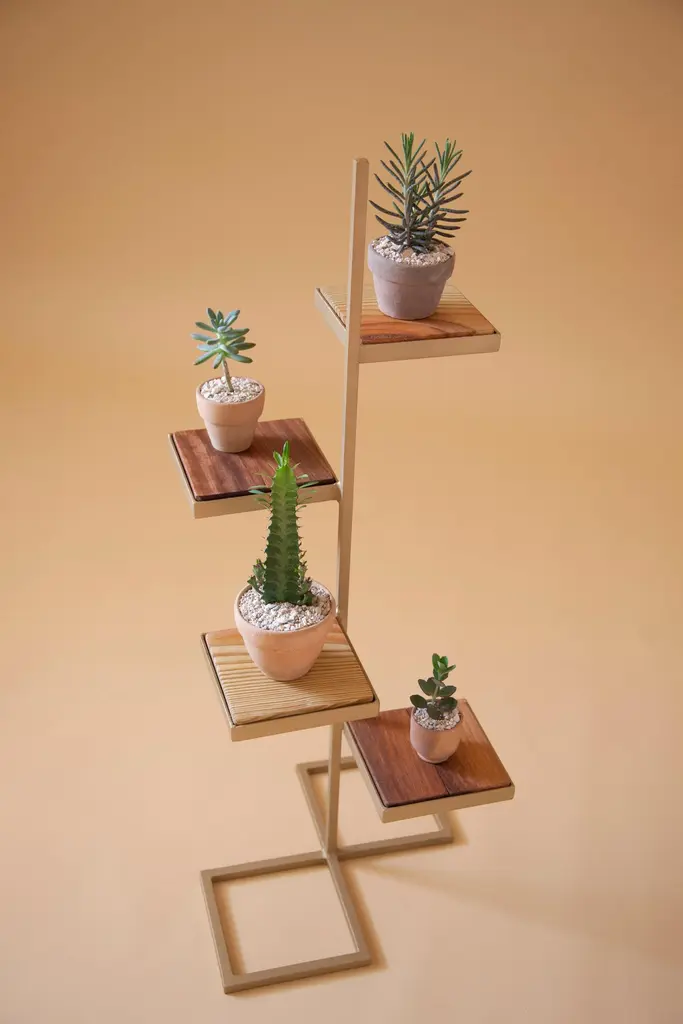 Aurea plant stand 3 by Sofia AlvaradoLimited edition 1 of 10 (one in stock)Materials: Metal & Woods / Golden, white or black.Dimensions: 86cm (H) x 32cm (W) x 32cm (D)FI is an ornamental artist who embodies the creative revelation of the sensitivity of the innate being, with uninhibited freedom by proposing a global universe between furniture, objects, scenery, sculpture, drawing, painting and letters.Inspired by the poetry that gives life, nature, the accuracy of imperfection, history, architecture, dreams, time and everything that educates beyond reason; transforms feelings and thoughts into stories to later create physically palpable pieces and scenarios by merging design with art, a principle that allows her to experiment with shapes, materials and color combinations, using all kinds of geometries, which manage to represent situations of an imagined reality.Sofia Alvarado, founder of Fi, is an architect and designer with the sensitivity necessary to recognize that sustainability is only possible where all actors prosper and human rights are respected, so the ideology of the study is based on the concept of Human Design, which promotes detailed work, integral design of things and efficiency on a human scale, in a tribute to Latin American hand made craft that has been suggested for years by the insecurity of ignorance. It uses technology but does not abandon the artisans, mainly it dignifies them and empowers, so that they appropriate their work to the fullest, and thus achieve luxury artisans.All pieces made in Fi are hand made in Panama by single / unique or limited edition, either under collection or to design to order. Fi - Sofia Alvarado born and based in Panama and graduated in architecture from the School of Architecture of Latin America and the Caribbean, Panama.She has participated in the Ibero-American Design Biennial in its editions bid16 / bid18 / bid20, Madrid, Spain and MADE Latina and in Sao Paulo Design week, 2019, Sao Paulo, Brazil with its Prisma, Áurea, Welcome Back and Beautiful City collections.