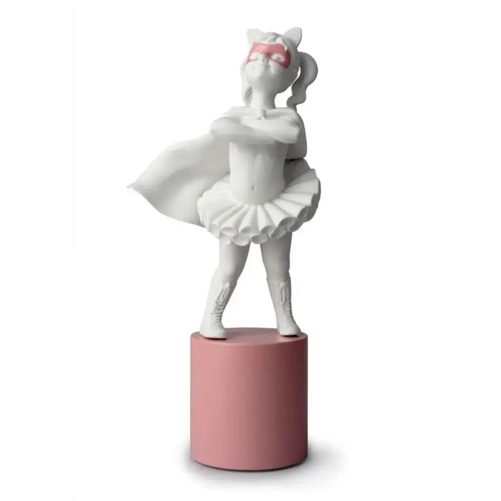 The Ballerina Bunny Sculpture is a lively decorative accent that contributes a sense of whimsy to an interior space. Crafted from brass, a tall bunny stands upright atop a circular base of white marble. The bunny is displayed wearing a gorgeous flower petal tutu made from natural selenite stone.