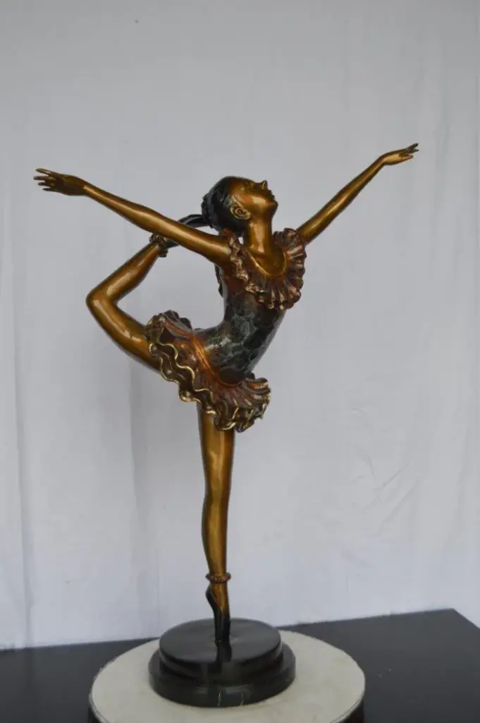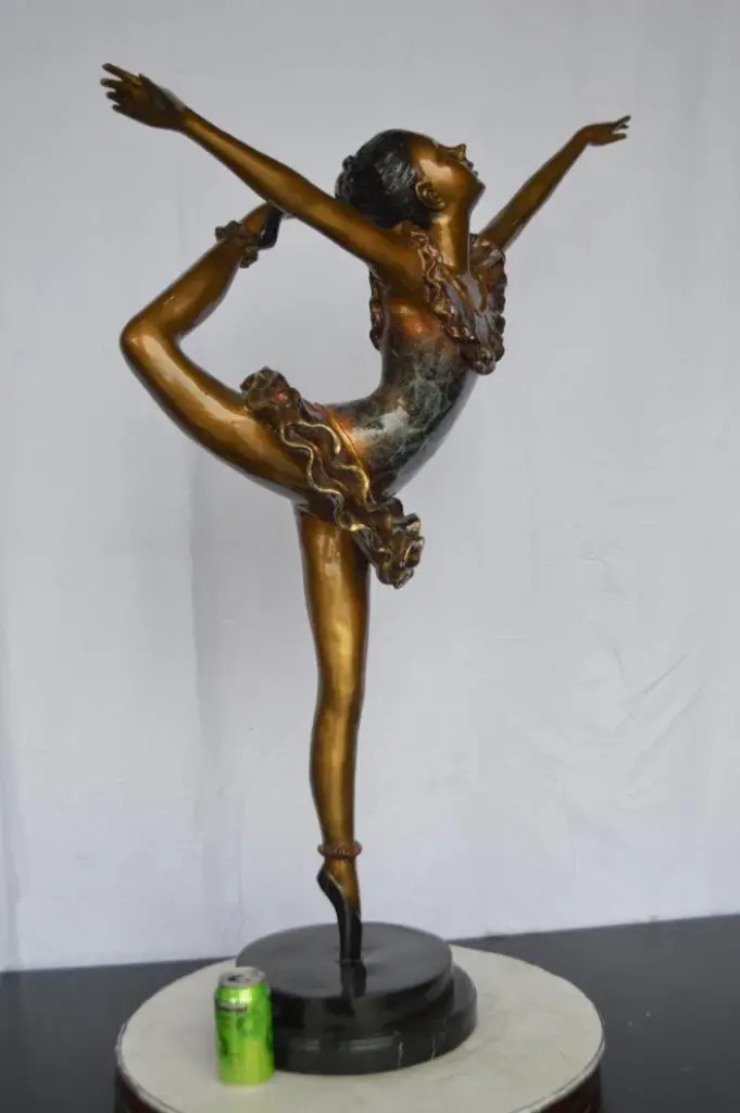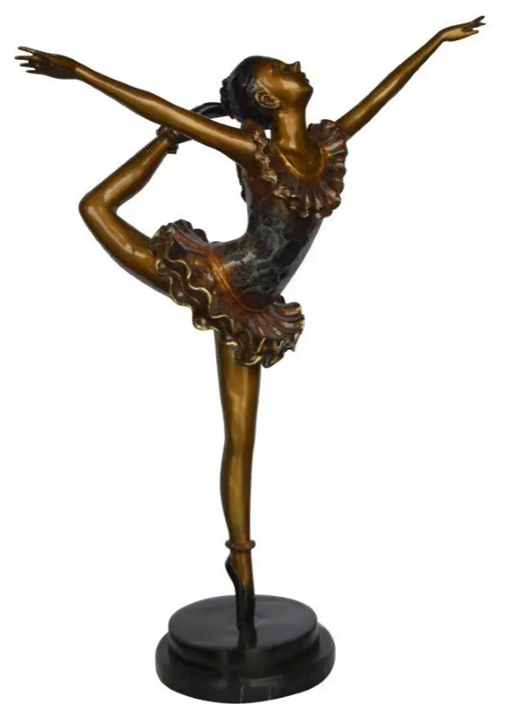 Ballet Dancer Dancing On One Leg Bronze Statue - Size: 35"l X 14"w X 47"h.