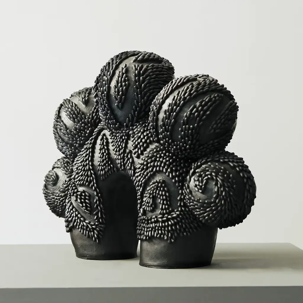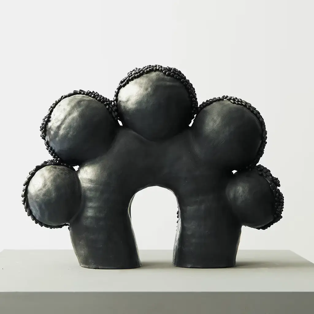 Bang Bang decorative sculpture is made of gray stoneware covered by pearls in gray stoneware. This piece is currently on show and immediately available at Artemest Galleria New York.