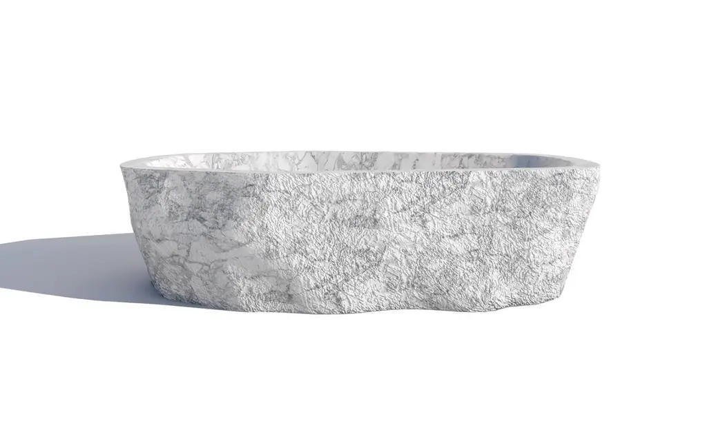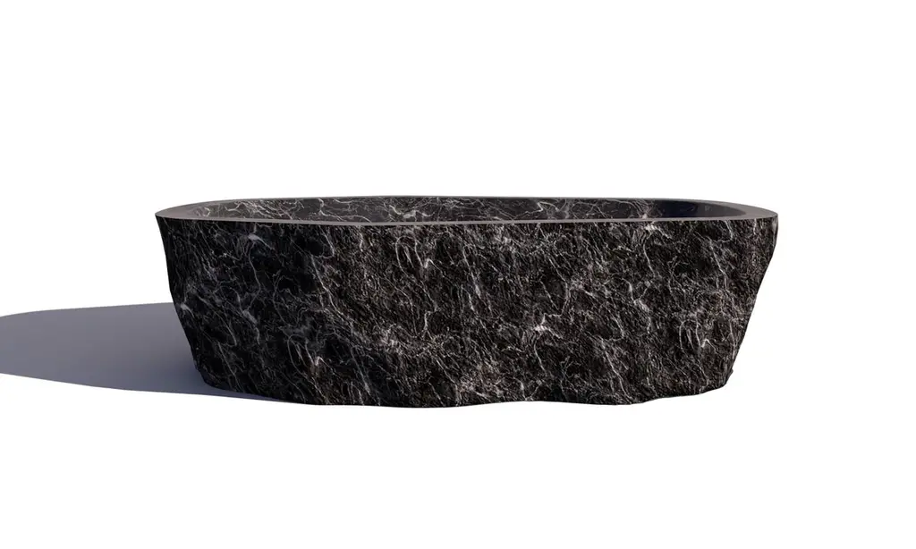 Baptiz Red Travertine Bath Tub by Andres MonnierUnique Piece.Dimensions: D 190 x W 110 x H 50 cm.Materials: Red travertine.Available in white marble, black marble, and red travertine. Prices may vary. Please contact us.Treko Concrete is a Mexican studio based in Ensenada, that aims to create functional handcrafted furniture and sculptural pieces to tell stories with art and design. With the direction of Andres Monnier, Treko Concrete now creates handmade fire pits, art objects, and functional furniture with natural stone, mirrors, concrete, wood, and metal. Treko works with different techniques and languages of Creation to innovate new purposes in conventional furniture.Andrés Monnier is a Mexican artist born in Guadalajara and is based in Ensenada.He aims to create sculptural pieces to express stories through the synergy between art, design, and sculpture. In 2017 he founded his studio, where hand in hand with his team, created pieces with fire, art objects, and functional furniture with rock, glass, concrete, wood, and metal.At the end of 2020, Andrés began to create his first collection of pieces with rock. His signature material. It wasn't until 2021 that he (with studies in medicine and industrial engineering) decided to launch as an emerging artist and held his first exhibition entitled “Olympo”, in which he exhibited the 17 pieces of this first collection inspired by Greek Mythology.Monnier participated in his first exhibition as an artist in Tribeca, NY with Galerie Philia.His motivation is to use different techniques and languages of creation to innovate with his proposals for the world of conventional furniture. Monnier is a self-taught sculptor whose dream is to create and design his universe of pieces.