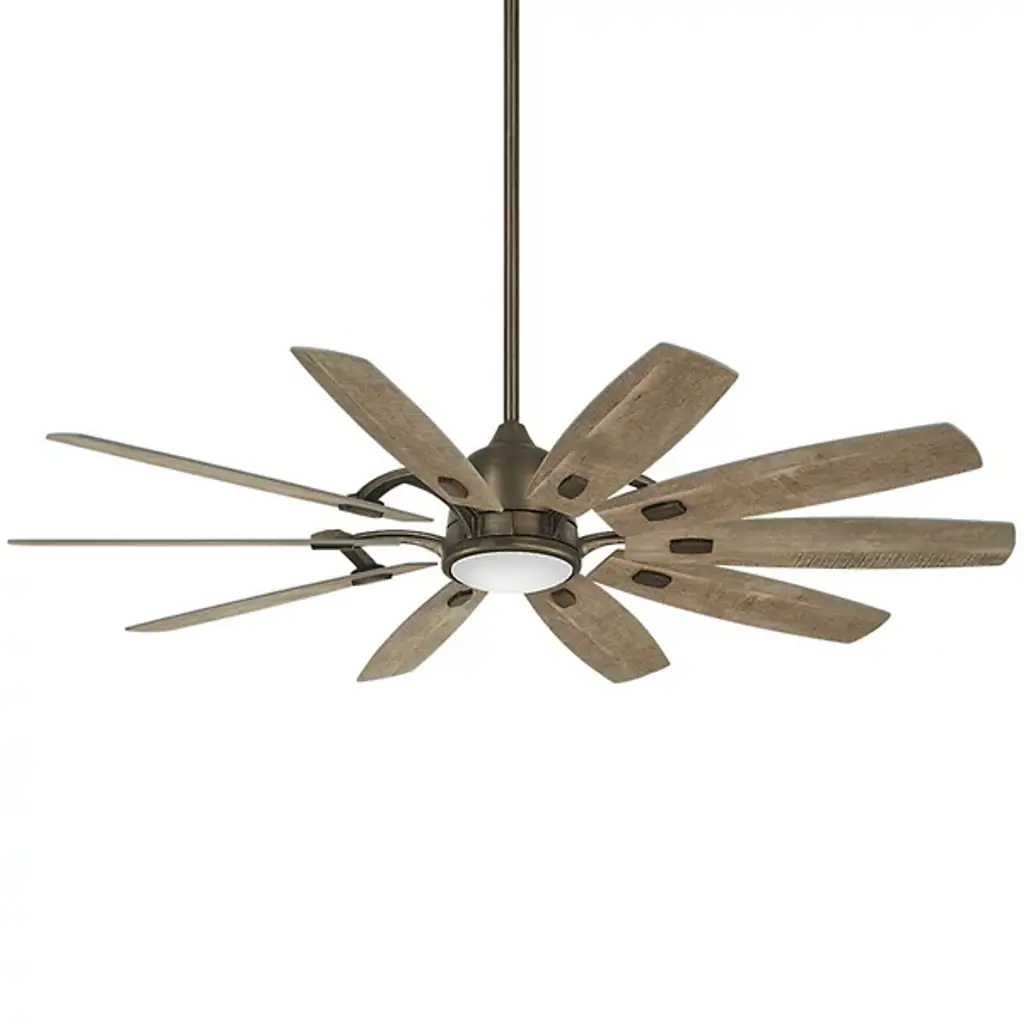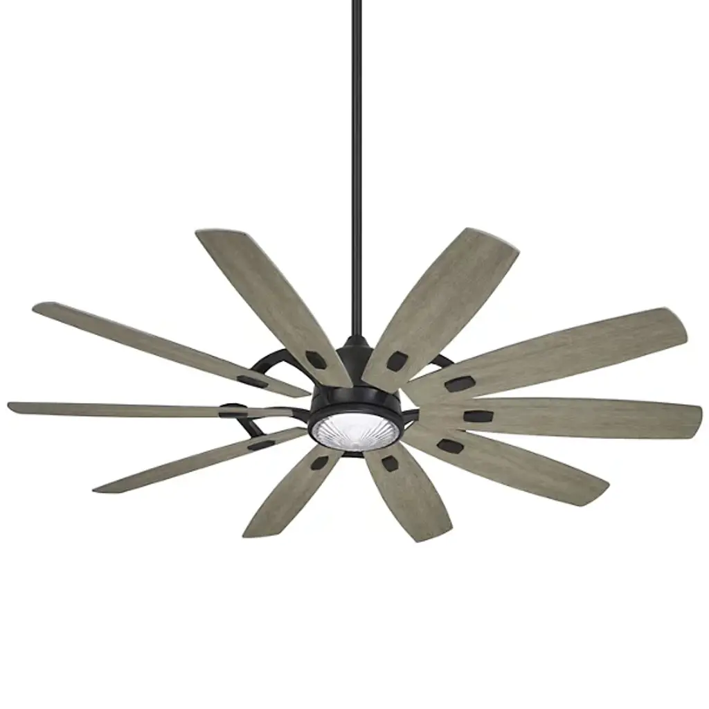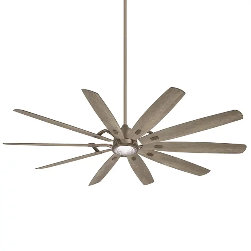 The Barn H20 LED Smart Outdoor Ceiling Fan from Minka Aire Fans matches the time-tested rustic notes of the home while invigorating the space with a wirelessly controlled breeze. It's a robust piece crafted for the living room or patio. It streams down in a slender downrod covered with a handsome finish. The down rod directs one's gaze to the room-accenting light source fitted below the engine housing. The engine drives the wood-textured blades across separate speeds that can be controlled with the included remote or one's smart device via Wi-Fi. The wide-spanning fan surrounds the room with a generous air surge.