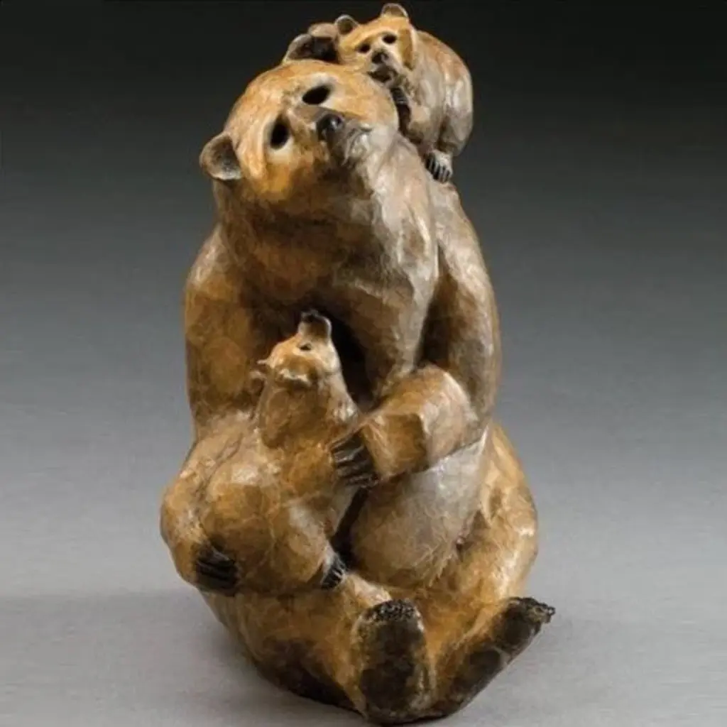 This evocative Bronze Sculpture "Mama Bear" was created by Eli Hopkins for the studios of renowned artist Mark Hopkins, and captures a heartwarming image of familial intimacy from the wild in a vivid statement on the transcendental nature of a mother''s love. Finished in warm, rich colors and stunning detail, "Mama Bear" expresses the joy the wild world inspires within you with creative contemporary artistic flair. This very special design is only available in an extremely limited edition of 100 pieces, so get this marvelous collector''s edition before it disappears. Like all Mark Hopkins Sculptures, "Mama Bear" is crafted with pride by gifted artisans right here in the USA. Internationally renowned American artist Mark Hopkins creates bronze sculptures that have thrilled collectors and casual art fans alike for more than two decades. Mark Hopkins'' unique balance of organic inspiration and singular contemporary design has been called "bronze in motion" for its fluid look, which often appears to display natural beauty in defiance of gravity. About Mark HopkinsMark Hopkins takes his inspiration for every facet of life on Earth, from the majesty of wildlife to mankind''s interaction with nature, and produces limited-edition pieces that evoke a sense of awe and respect for the mysteries and loveliness of the world around us. Collectors of his work include Barbara Mandrell, Clint Eastwood, Bill Clinton, Colin Powell, George and Barbara Bush and a host of other luminaries and corporations including the National League Association of Baseball Club Owners, the Atlanta National Golf Club, Humana, Coca-Cola and others. Each Mark Hopkins sculpture is crafted with pride in the USA. Captivated by form and design, Mark has personally created a signature style of vibrant vitality resulting from decades of study. Encouraged by parents and teachers from an early age, Mark''s unique talent developed alongside his technical skills of sculpting and casting. As an artist, Mark is constantly challenging himself to render the rich beauty of life and the deep emotion of the human soul into flowing sculptural form, noting "I strive to express beyond the image, to catch spirit, to reveal deeper emotions, and to share joy. "About the Production ProcessFrom the artist''s hand to the final polishing stages, many intricate steps go into the creation of a limited edition bronze sculpture. First the reproduction mold is made in which layers of silicone rubber and plaster are delicately applied to the original work. Then hot wax is poured into the reproduction mold to form an exact replica of the original sculpture. When the wax replica is removed from the mold, it is then inspected and refined or "chased" by hand to remove any imperfections that may have occurred in the reproduction process. Next, ceramic cup and wax sprues, or gates, are added which later will help channel the molten bronze into the shell to create the sculpture. The next step is creating the ceramic shell by alternately dipping the wax replica over a period of several days into a vat of liquid slurry, then a vat of silica crystals. The shell is then set to dry, and the process repeats until the shell has reached the appropriate thickness and strength. The finished shell is placed in a high temperature oven that melts and removes the wax (the traditional "lost wax" method). The hardened or "fired" shell is secured, so the molten bronze can now be poured into the wax impression.