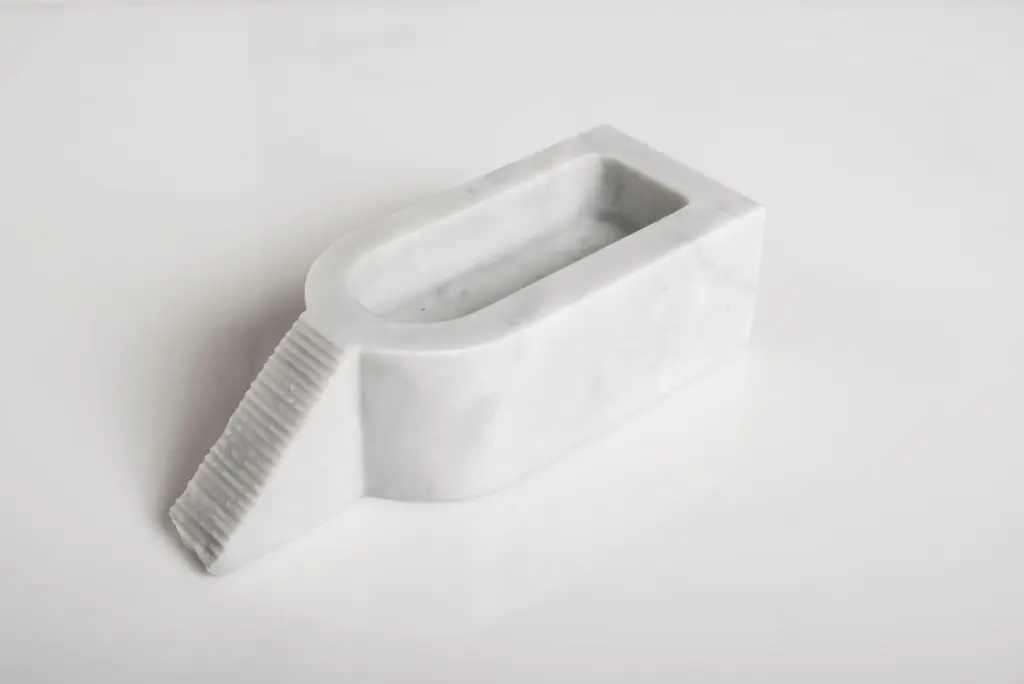 Berlin sculpture by Carlo MassoudHandmade Dimensions: D 9.5 x W 29.7 x H 10.5 cm Materials: Carrara MarbleCarlo Massoud’s work stems from his relentless questioning of social, political, cultural, and environmental norms. He often pushes his viewers to question their knowledge of the subject, leading them towards thought-inducing confusion and provocation.“I am in persistent search for new spaces, ideas, cultures, and destinations, and I actively document, research, and collect information from various sources.”The exploration of new and unknown places is key to his creations. Through these, he finds new stories to tell and share through collaborating with local artisans anddesigners, creating a global narrative that stems from unique associations of people, cultures, and materials.“Collaborating with local visionaries allows me to discover new techniques ofproduction, while using basic materials and groundbreaking technology. Our united effort creates an exchange of cultures, knowledge, and possibilities.”In 2013, he began working under his own name, participating in international fairs, including the Armory Show (NYC), Southern Guild (Cape Town), Design Days (Dubai), Milan Design Week (Milan), Maison & Objet (Paris) among many.