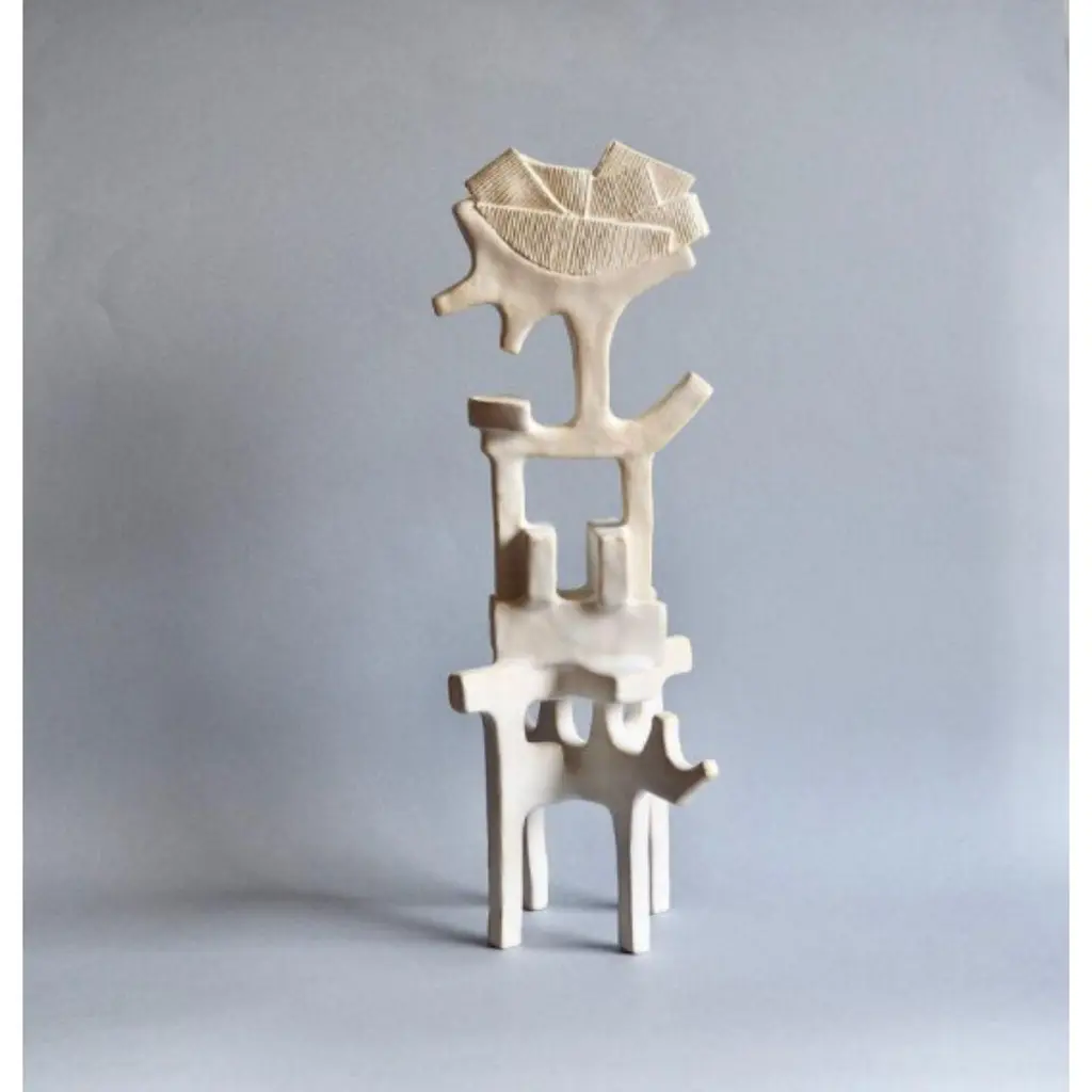 BG 445 Handcrafed Sculpture by Bronwen GrievesDimensions: D40 x W28 x H16 cmMaterials: black stoneware white slip.Other models can be done.Fired to 1180 cBronwen Grieves has been quietly and prolifically developing and refining her ideas and process over a 30 year period. Her works strive to balance structure with fluidity, using organic and inorganic forms as a reference point. Largely self-taught, she builds and fires all her work in her garden studio in Nottingham. Her work is informed by her extensive collection of mid century modernist objects and her passion for gardening. As a ceramist she has been developing her craft using flat coils which are incised with horizontal or vertical lines before being fixed together. She builds her pieces using grogged stoneware primarily in black and white; glaze is used sparingly, often limited to slips which are partially rubbed away to reveal the texture and colour beneath.