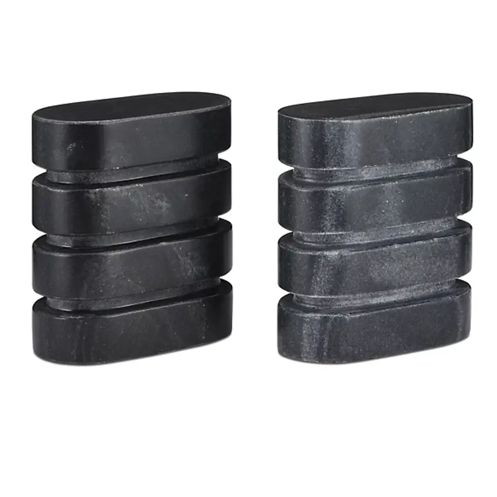 The Bheslana Object, Set of 2 from Currey & Company transforms natural marble into brutalist art. Each piece displays distinctive veining patterns that create a unique personality and character. The stone's subtle patina adds depth to these minimalist sculptures, making them perfect conversation starters. Handcrafted with precision, these objects maintain a raw, earthy quality while offering refined decorative appeal. Their asymmetrical forms create dynamic visual relationships when displayed together or separately. These versatile accessories enhance contemporary spaces with their understated yet powerful presence, bringing natural elements indoors with artistic intention.