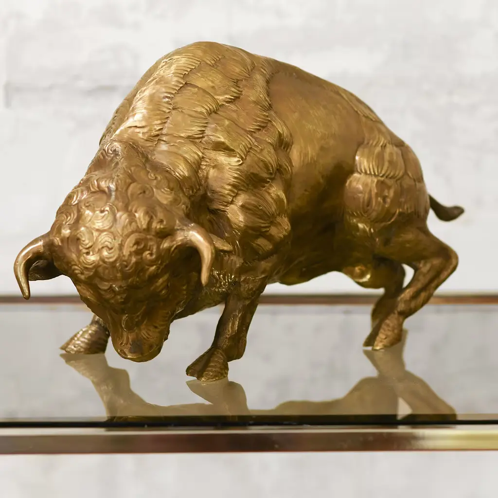 This exquisite brass sculpture of a bison captures the majesty and strength of this magnificent creature. Crafted using traditional techniques, each detail has been meticulously shaped to create a remarkable three-dimensional presence. The rich, textured surface of the brass enhances the visual impact, making it an impressive focal point for any home décor. Emblazoned with the Marchio Molto Collectibles, this sculpture is part of a limited edition of 3, reflecting the finest craftsmanship. Ideal for collectors and enthusiasts of unique art pieces, it serves not only as a decorative object but also as a symbol of artistry and tradition.