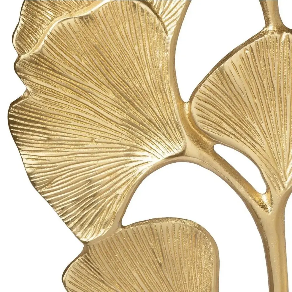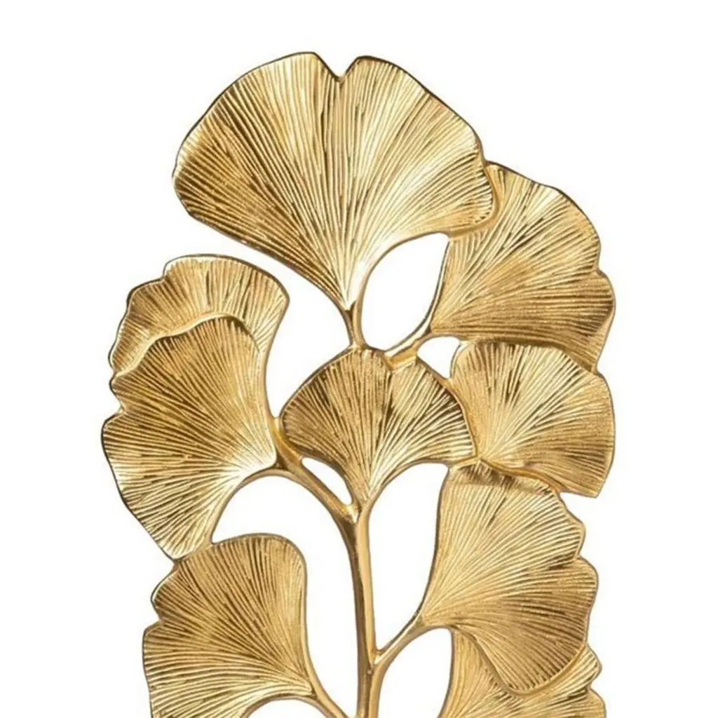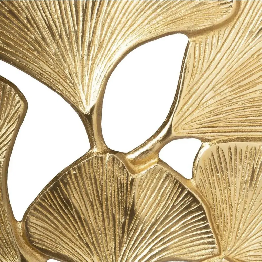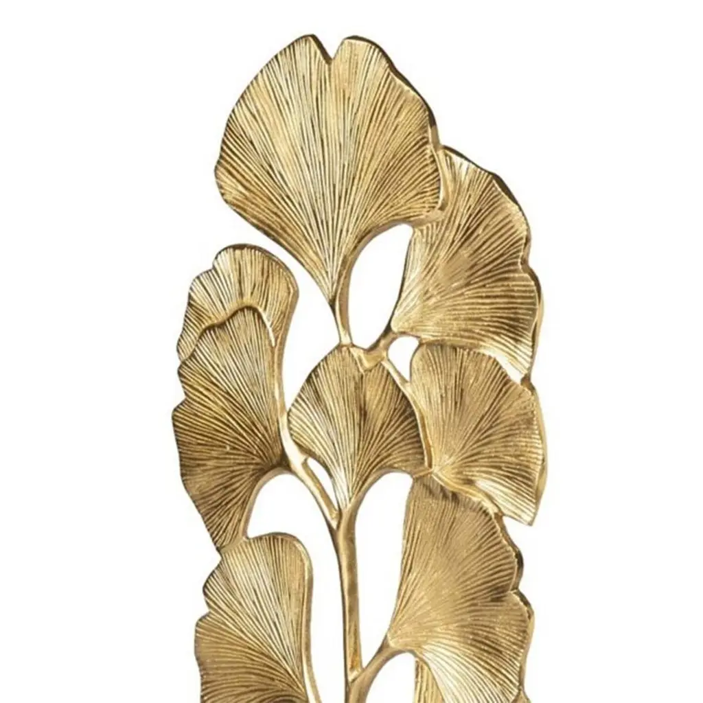 Sculpture Biloba High with metal structurein gold finish and with grey marble base.