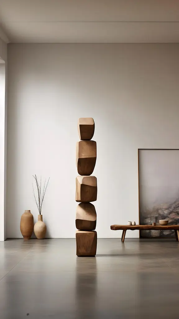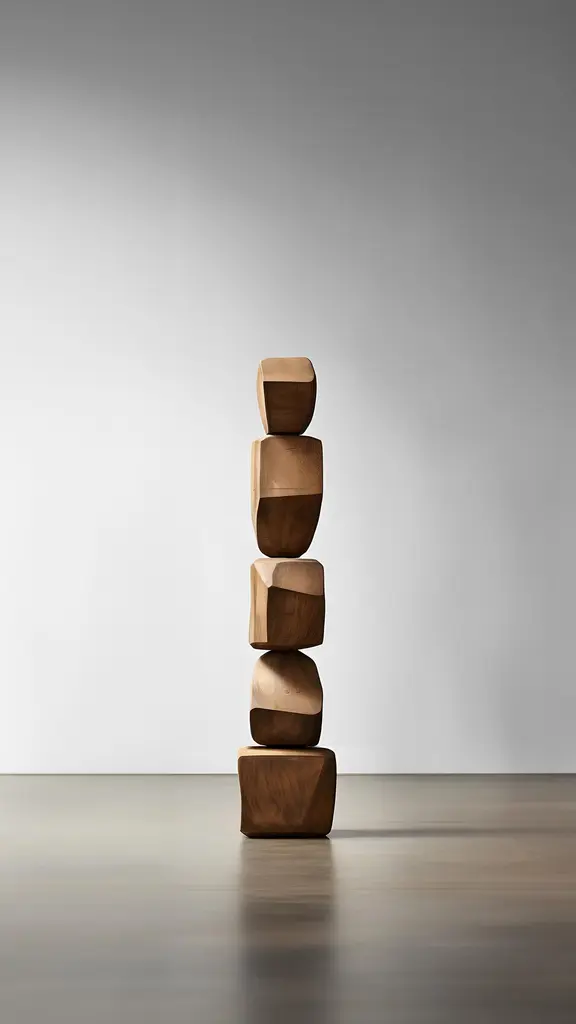 Biomorphic Serenity: Carved Oak Totem Still Stand No70 By Nono