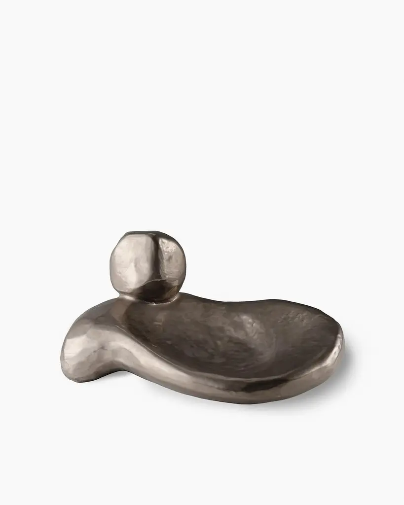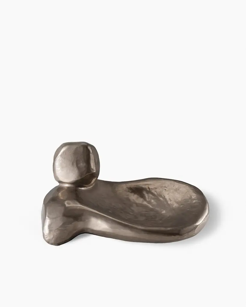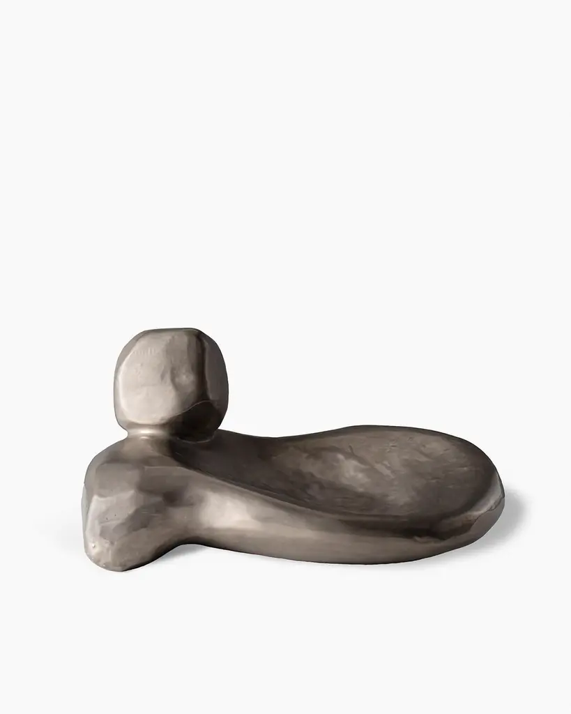 Hand-modeled sculpture, composed of two elements in white clay. The still-fresh surface is hand-smoothed. White glaze applied in the second firing and platinum glaze in the third firing.Presented in 2022, the collection consists of five large-scale sculptures. The forms evoke organic elements and decorative or chromatic details inspired by textures found in the Bitossi Archive. The fluid, soft, nature-inspired forms are crafted using slab-building and slip-casting techniques and finished with a range of surfaces from earthy matte tones to luminous gold and platinum glazes.Each piece retains visible traces of the artisanal process: corrugated cardboard impressions, rough hand-worked textures, and expressive fingerprints left by the sculptor, transmitting a powerful creative energy.Design by Faye ToogoodFaye Toogood (United Kingdom, 1977) has made sustainability, material research, and the fusion of different creative disciplines the defining features of her work. Her creations — whether garments, furniture, or artworks — are sculptural expressions that reinterpret the past through a contemporary lens.