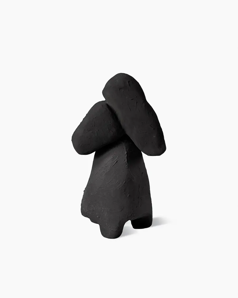 Sculpture composed of two elements made by slip casting in white clay. The still-fresh surface is incised and pitted by hand. Matte brown glaze applied in a second firing.Presented in 2022, the collection consists of five large-scale sculptures. The forms evoke organic elements and decorative or chromatic details inspired by textures found in the Bitossi Archive. The fluid, soft, nature-inspired forms are crafted using slab-building and slip-casting techniques and finished with a range of surfaces from earthy matte tones to luminous gold and platinum glazes.Each piece retains visible traces of the artisanal process: corrugated cardboard impressions, rough hand-worked textures, and expressive fingerprints left by the sculptor, transmitting a powerful creative energy.Design by Faye ToogoodFaye Toogood (United Kingdom, 1977) has made sustainability, material research, and the fusion of different creative disciplines the defining features of her work. Her creations — whether garments, furniture, or artworks — are sculptural expressions that reinterpret the past through a contemporary lens.