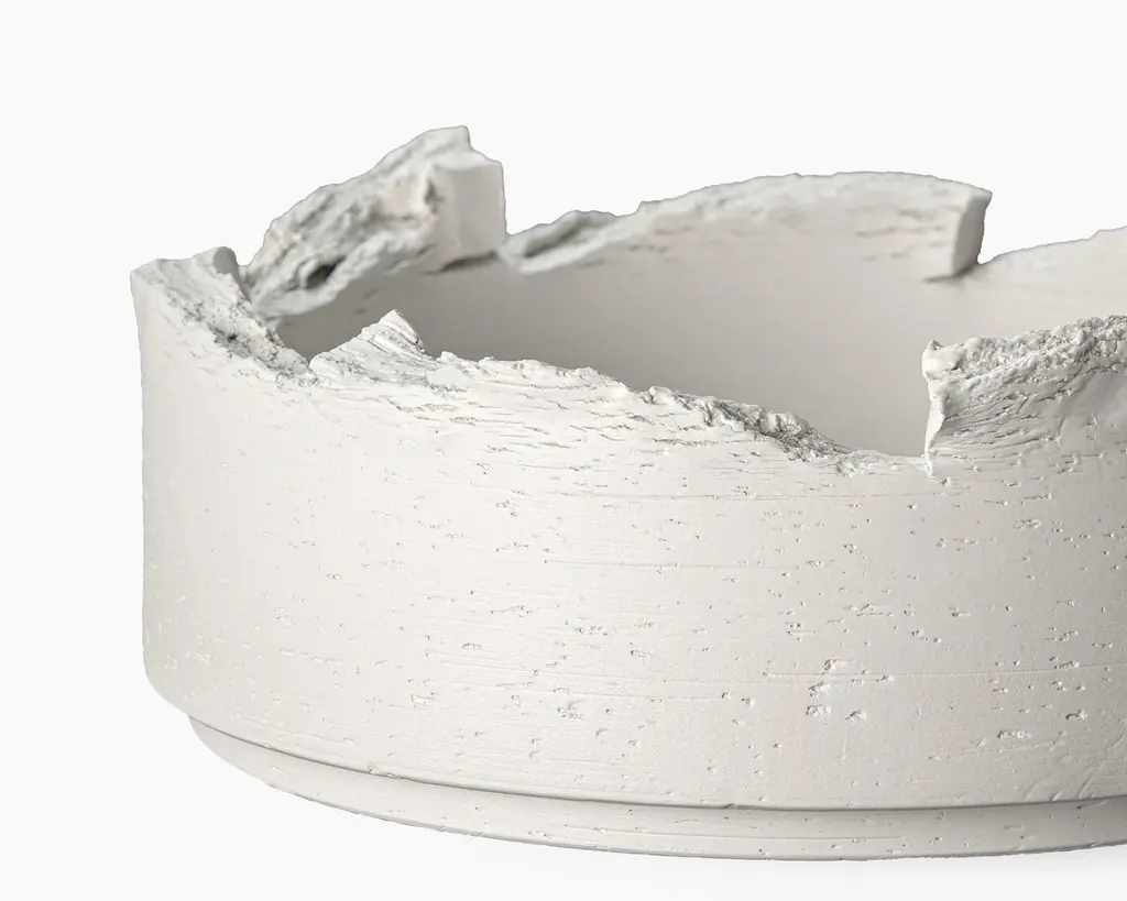 Clay is the name of the collection designedby Andrea Trimarchi and Simone Farresin.The name is now highly associated withthe project. The designers drew inspirationfrom sculptures created by Aldo Londiin the 1980s and used a material‑basedresearch approach as a pivotal elementof the new project. The process reignssupreme, with the lathe shaping theform to a new thickness. Cylinder vasesand disc bowl are engraved from the topvertically, producing sections that arethen “torn” by hand, creating each elementwith uniqueness. Colors alternate in eightoptions between matte white marbleand several pastel hues. The project wasinitially presented in 2018.
