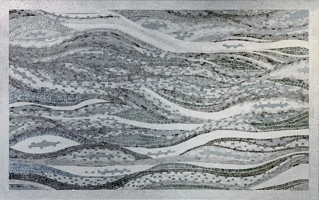 Introducing the "Black and White Waves - Modern Mosaic," a stunning piece of craftsmanship that beautifully encapsulates the mesmerizing essence of ocean waves. This exquisite mosaic, designed with sophistication in mind, brings a touch of coastal elegance to any space. Meticulously crafted from premium-quality marble stones, this mosaic serves as a testament to artistry and durability. Its timeless black and white color scheme creates a striking contrast that draws the eye and enhances the aesthetic appeal of your environment. Whether you are looking to elevate an indoor room or create a serene outdoor oasis, this piece seamlessly fits into a variety of design schemes, radiating a sense of tranquility and style.The "Black and White Waves" mosaic is incredibly versatile. Its robust structure makes it suitable for numerous applications, including installation in pools, as an eye-catching feature wall, or as a sophisticated flooring option. Imagine transforming your space into a haven that reflects the soothing rhythm of ocean waves, allowing you to escape the hustle and bustle of everyday life. This modern mosaic not only serves a decorative purpose but also creates an ambiance that promotes relaxation and serenity. The fluid lines of the wave design evoke a sense of movement and vitality, making it an ideal choice for spas, bathrooms, or any area where you wish to foster a tranquil atmosphere. Easy to install and maintain, this marble mosaic is designed to withstand the test of time, both in terms of style and durability. Add a touch of refined elegance to your home or commercial space with the "Black and White Waves - Modern Mosaic" — a perfect blend of nature and artistry, waiting to enhance your decor. Experience the beauty of the ocean in your own sanctuary with this exquisite piece.