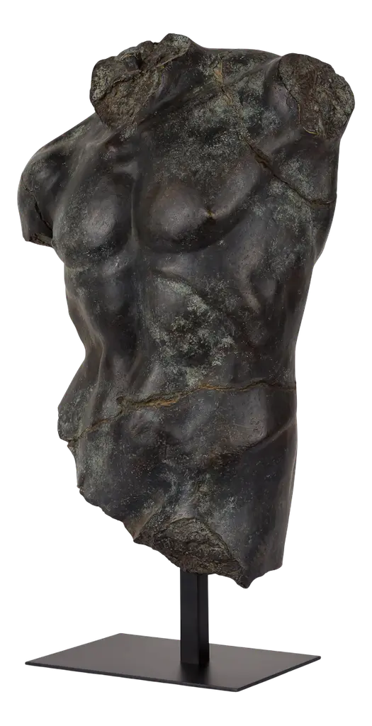 Black Apollo torso sculpture, small size, in resin and metal base.Apollo is the male emblem of strength and beauty. This small Greek torso is the perfect embodiment of the son of Zeus and Leto. From the 5th century BC, the Romans also adopted him for his healing powers and built temples to his glory.Material: Composite materialH: 37 cm, W: 22 cm, D: 17 cmWeight: 4.15 kg