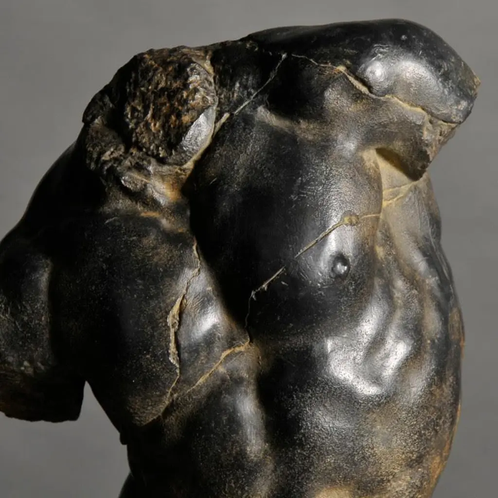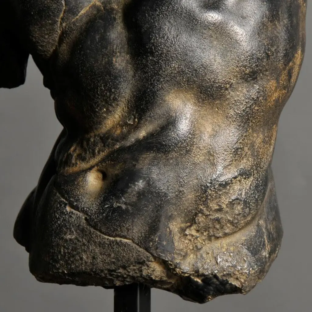 Black Apollo Torso Sculpture, Small Size, In Resin And Metal Base.