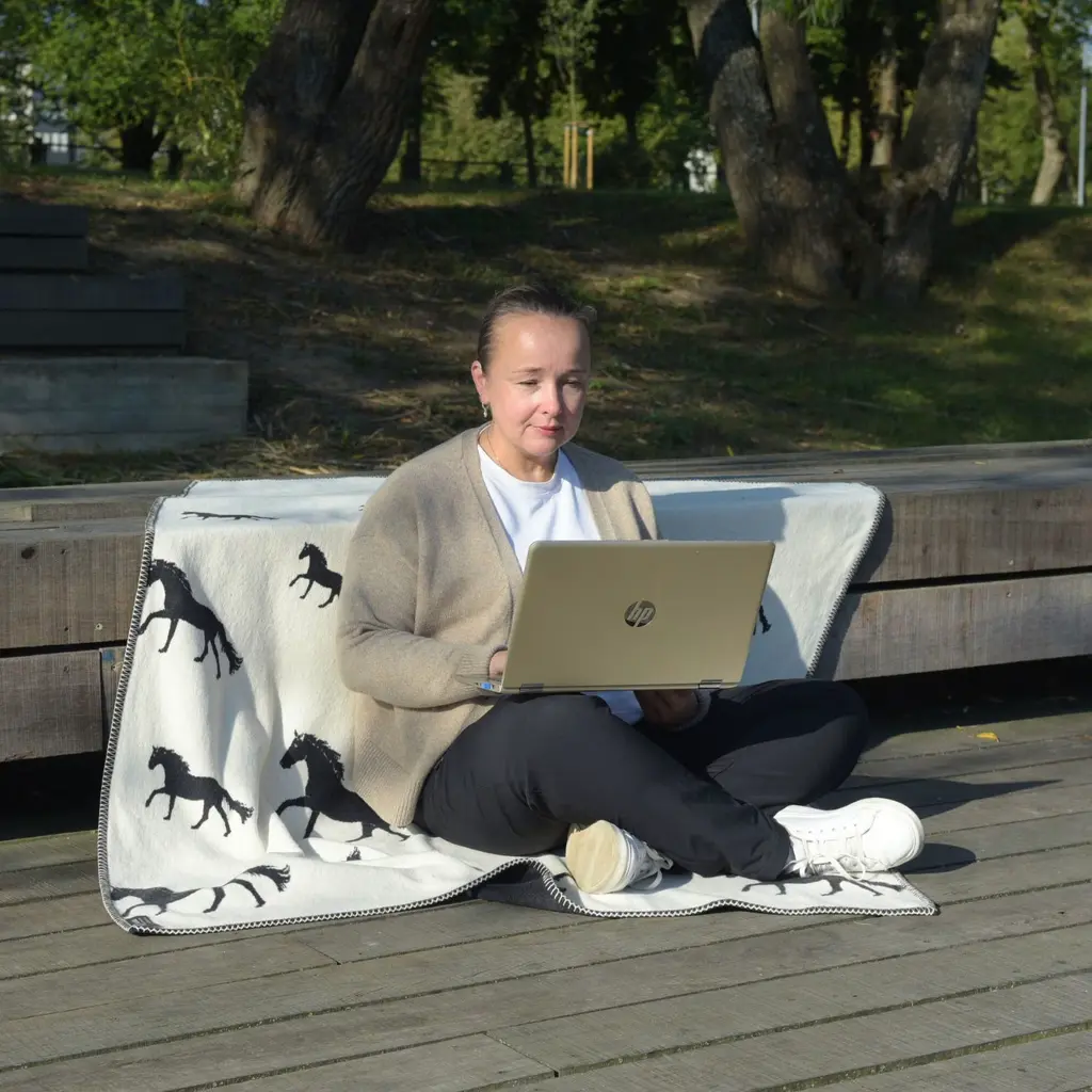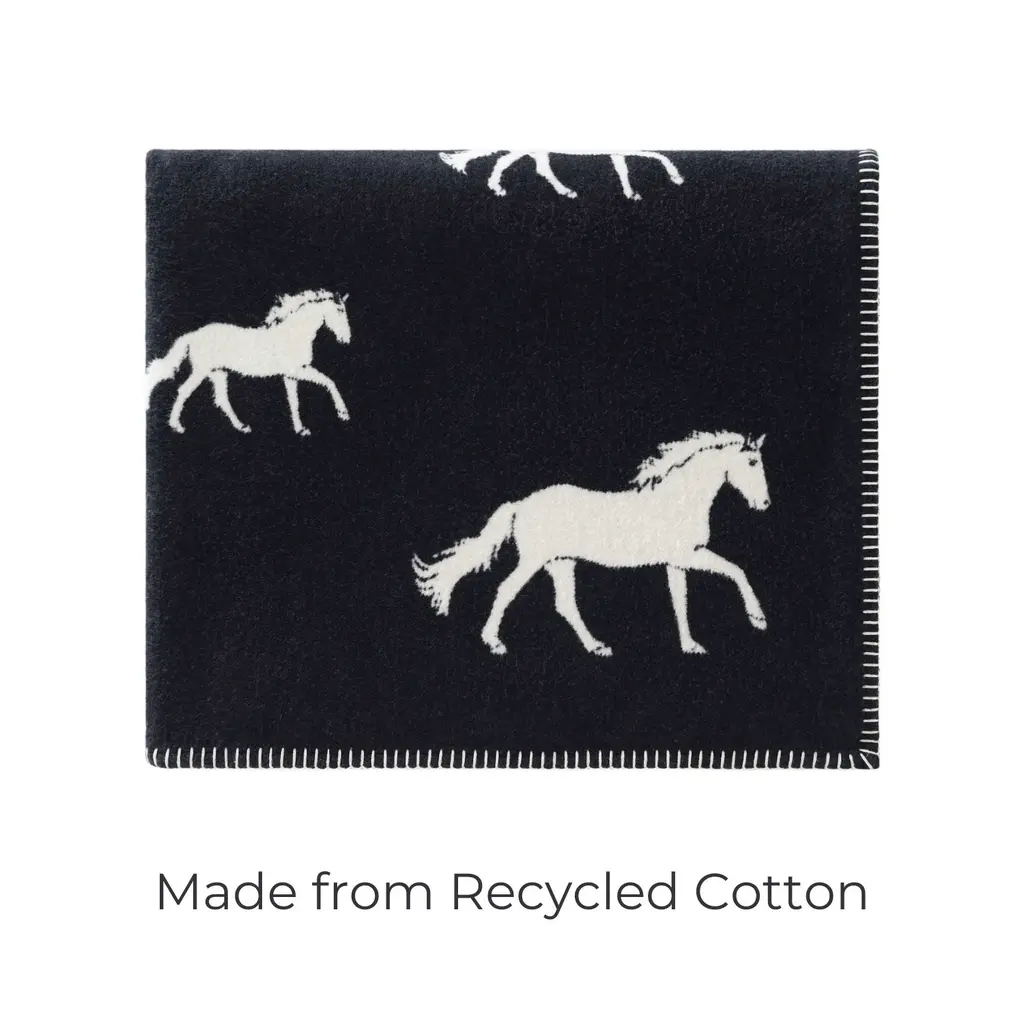 Gallop home to envelop yourself with this soft, luxurious blanket. In a monochromatic colour scheme of black and off-white with contrasting horses adorning it, this blanket is made to be the stand-out accessory of your home. It features a fully reversible design with an inverted colour-scheme on the reverse, allowing you to style it as best suits your décor. Crafted from sumptuously soft cotton which has been brushed for an even softer feel. These blankets are a sustainable choice, made in the U.K. from cotton which has been recycled. Measuring 120 x 160 cm, it’s perfect to cosy up on your sofa or draping over your favourite armchair. Finished with a blanket-stitched edge, this blanket combines style with sustainability to elevate your home decor.