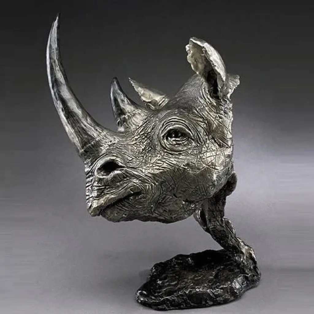 This amazing Bronze Black Rhino Sculpture is part of gifted artist Mark Hopkins'' Serengeti Collection from his Nature Series, and pays tribute to an iconic noble beast from the exotic wild. Crafted in the finest bronze available anywhere in the world, the Black Rhino Sculpture evokes the essence of one of the largest and most unique mammals on the face of the planet, and expresses your passion for the beauty of nature in all its vital forms. Special "hot patina" finishing techniques bring out the incredible color and texture of this special bust, which is sculpted at a slight angle to impart a sense of motion and life. Made with pride right here in the USA, the Black Rhino is limited to an edition of just 550 sculptures. Internationally renowned American artist Mark Hopkins creates bronze sculptures that have thrilled collectors and casual art fans alike for more than two decades. Mark Hopkins'' unique balance of organic inspiration and singular contemporary design has been called "bronze in motion" for its fluid look, which often appears to display natural beauty in defiance of gravity. About Mark HopkinsMark Hopkins takes his inspiration for every facet of life on Earth, from the majesty of wildlife to mankind''s interaction with nature, and produces limited-edition pieces that evoke a sense of awe and respect for the mysteries and loveliness of the world around us. Collectors of his work include Barbara Mandrell, Clint Eastwood, Bill Clinton, Colin Powell, George and Barbara Bush and a host of other luminaries and corporations including the National League Association of Baseball Club Owners, the Atlanta National Golf Club, Humana, Coca-Cola and others. Each Mark Hopkins sculpture is crafted with pride in the USA. Captivated by form and design, Mark has personally created a signature style of vibrant vitality resulting from decades of study. Encouraged by parents and teachers from an early age, Mark''s unique talent developed alongside his technical skills of sculpting and casting. As an artist, Mark is constantly challenging himself to render the rich beauty of life and the deep emotion of the human soul into flowing sculptural form, noting "I strive to express beyond the image, to catch spirit, to reveal deeper emotions, and to share joy. "About the Production ProcessFrom the artist''s hand to the final polishing stages, many intricate steps go into the creation of a limited edition bronze sculpture. First the reproduction mold is made in which layers of silicone rubber and plaster are delicately applied to the original work. Then hot wax is poured into the reproduction mold to form an exact replica of the original sculpture. When the wax replica is removed from the mold, it is then inspected and refined or "chased" by hand to remove any imperfections that may have occurred in the reproduction process. Next, ceramic cup and wax sprues, or gates, are added which later will help channel the molten bronze into the shell to create the sculpture. The next step is creating the ceramic shell by alternately dipping the wax replica over a period of several days into a vat of liquid slurry, then a vat of silica crystals. The shell is then set to dry, and the process repeats until the shell has reached the appropriate thickness and strength. The finished shell is placed in a high temperature oven that melts and removes the wax (the traditional "lost wax" method). The hardened or "fired" shell is secured, so the molten bronze can now be poured into the wax impression.